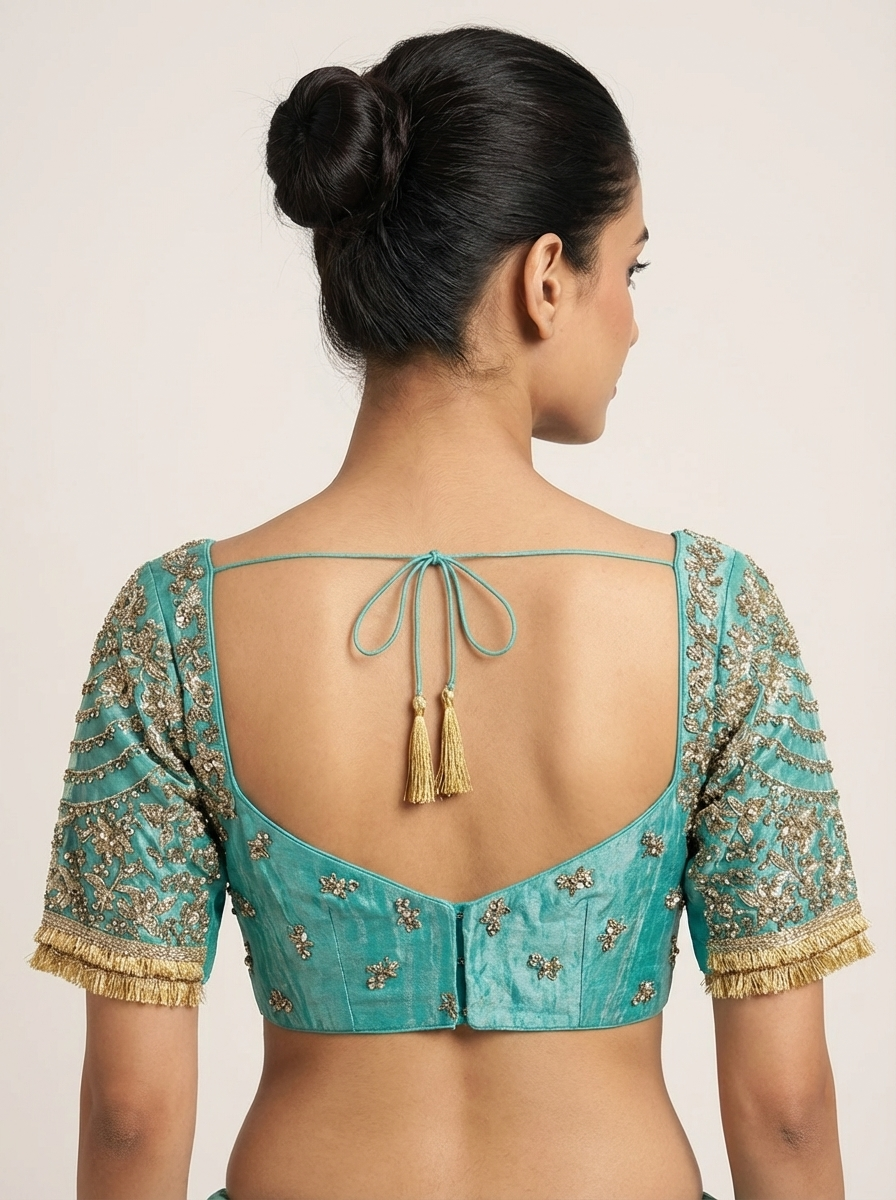 Sea Green Hand Embroidered Blouse