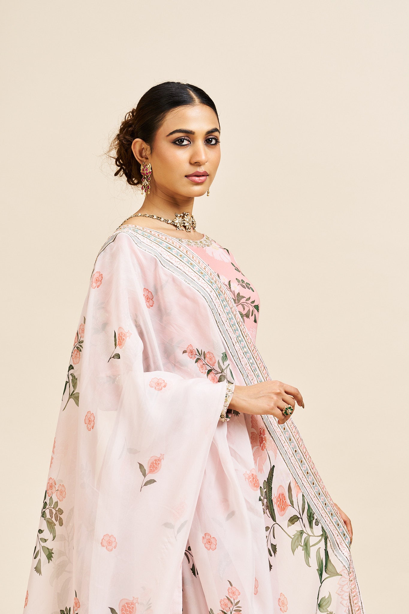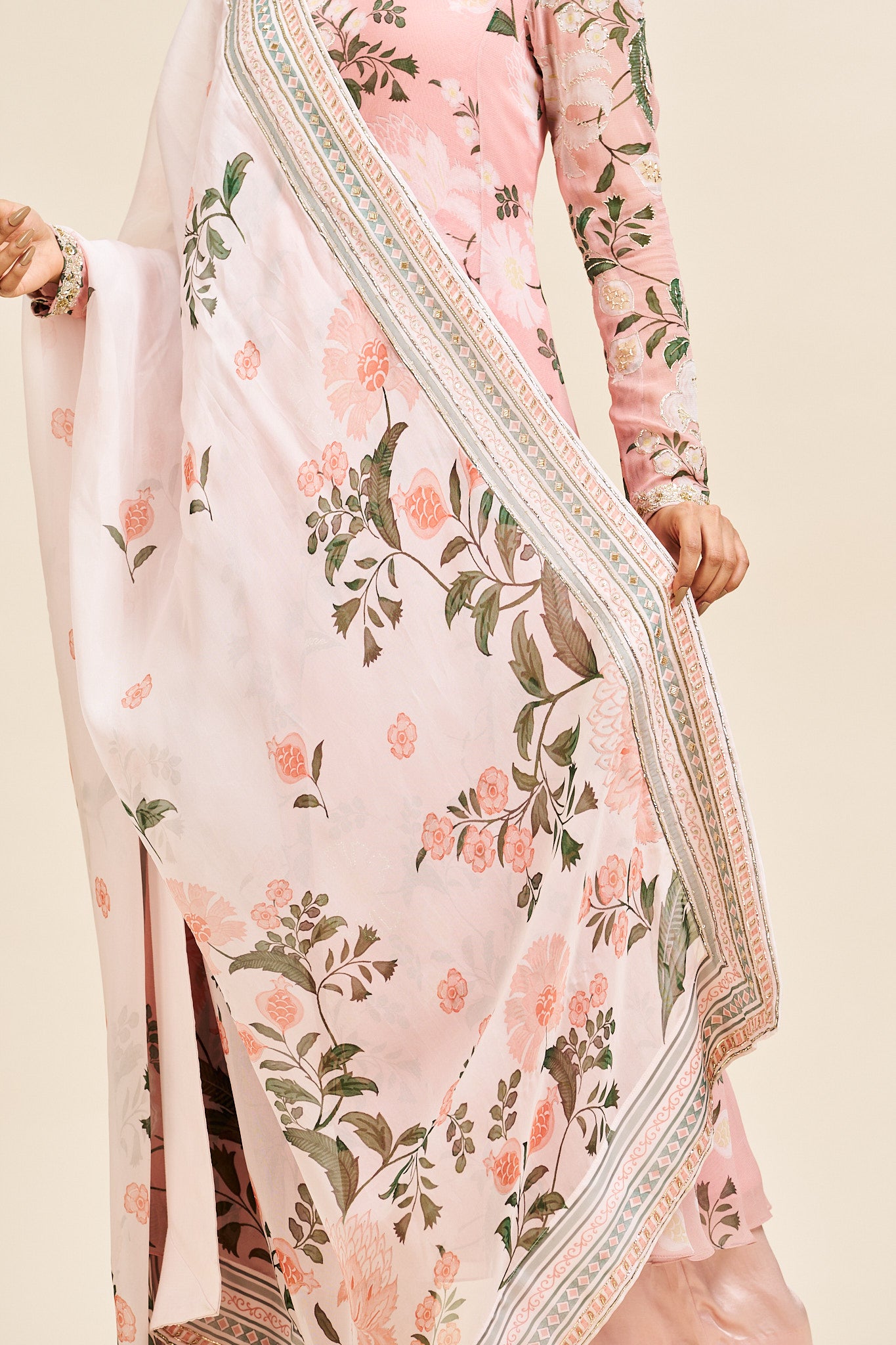 Description: Soft blush pink set with dupatta, exuding delicate feminine charm.