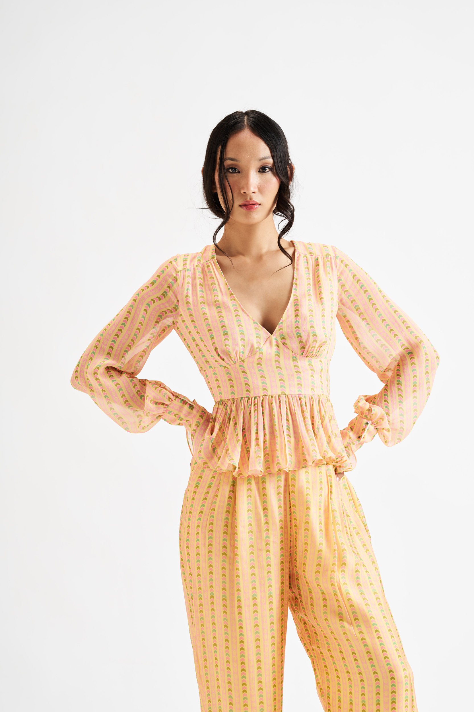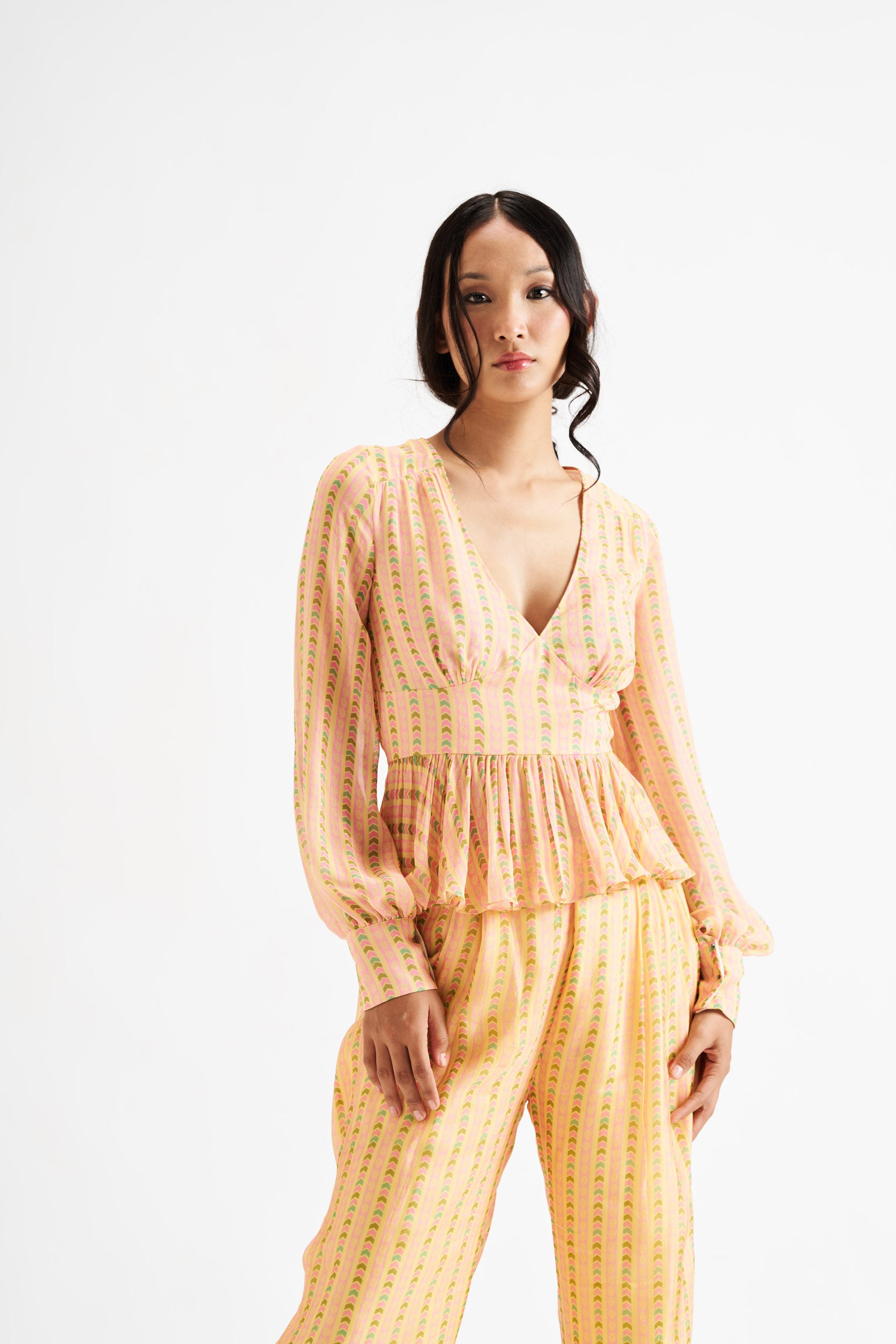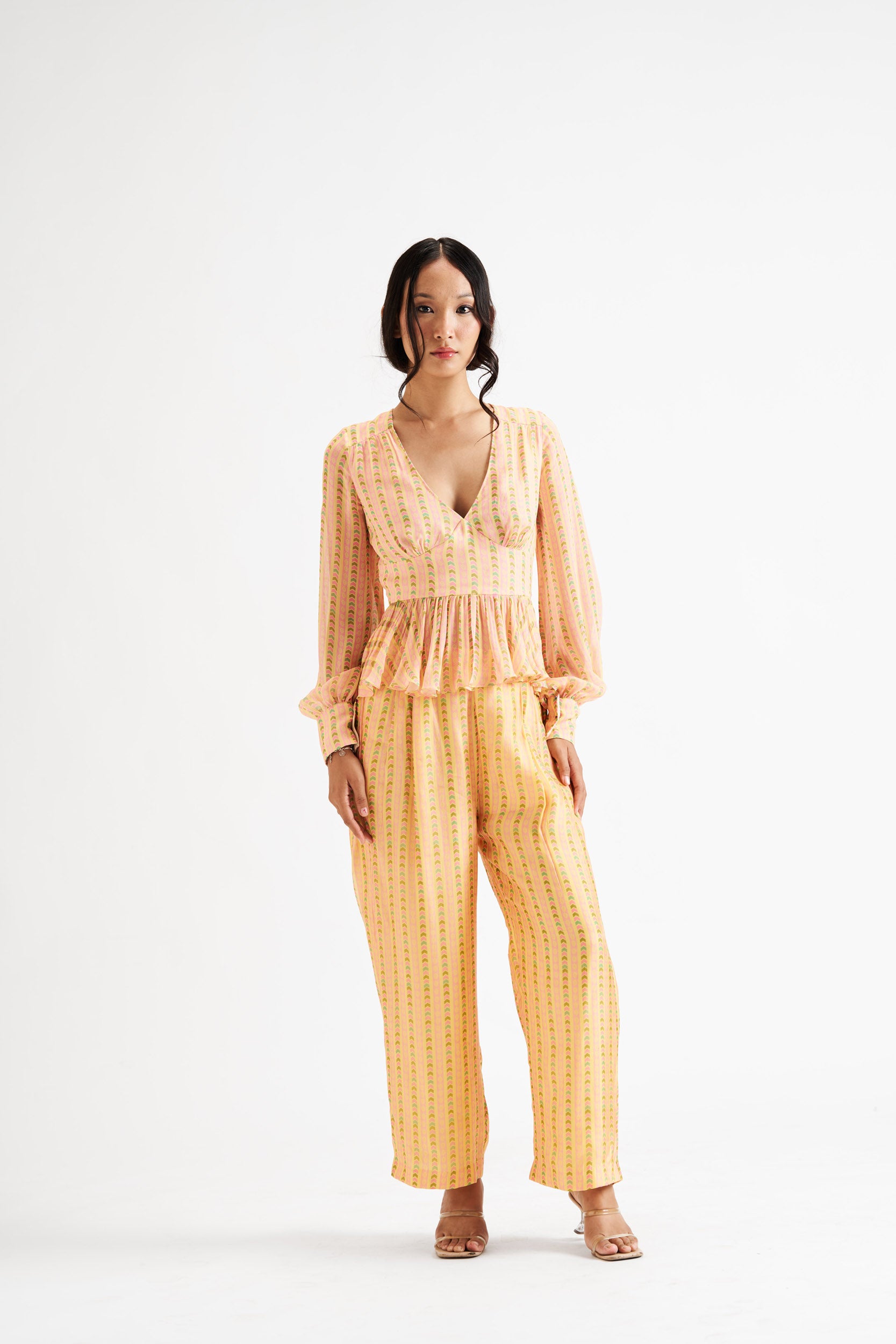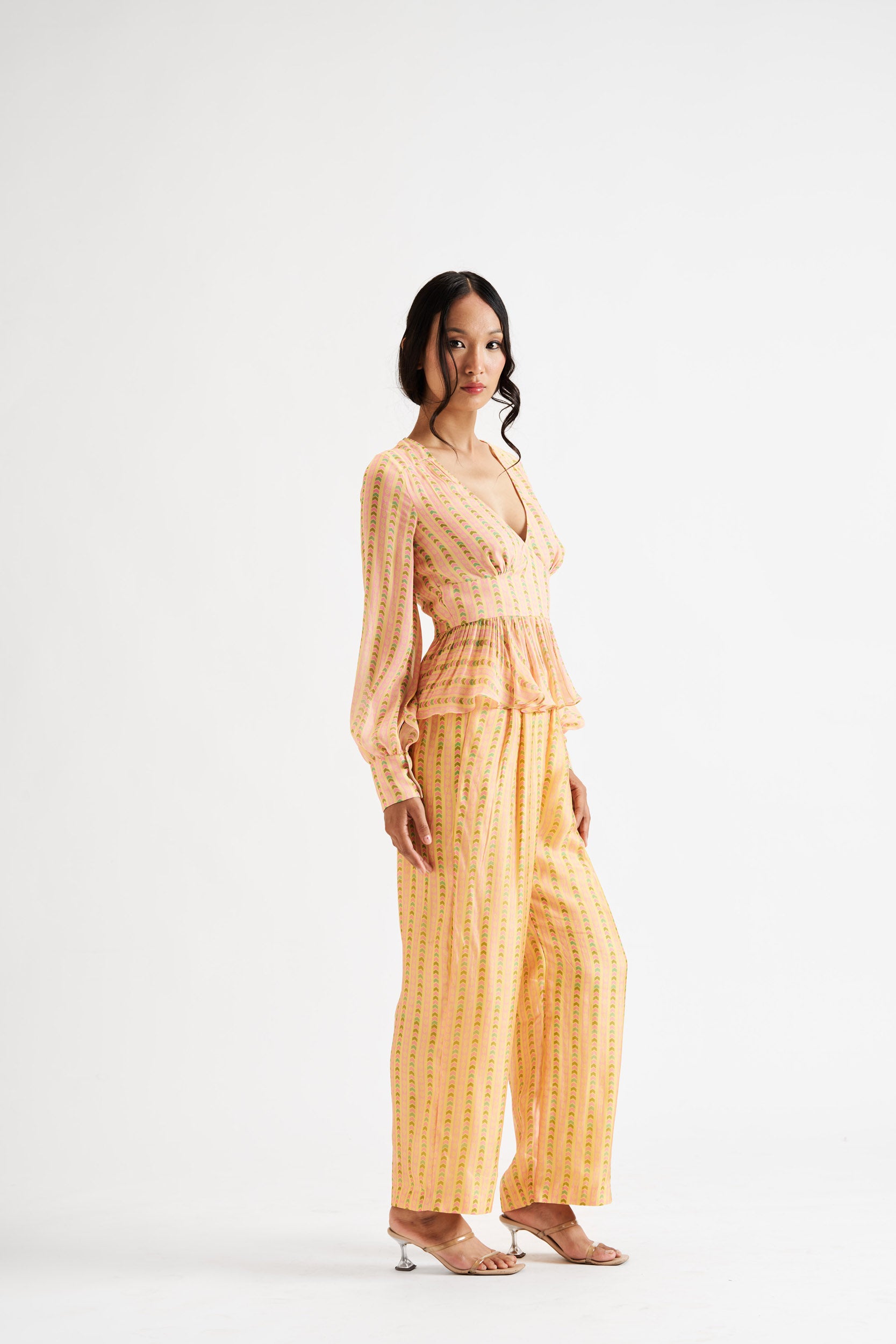 Analice-Yellow Lines Peplum Co-ord Set RTS