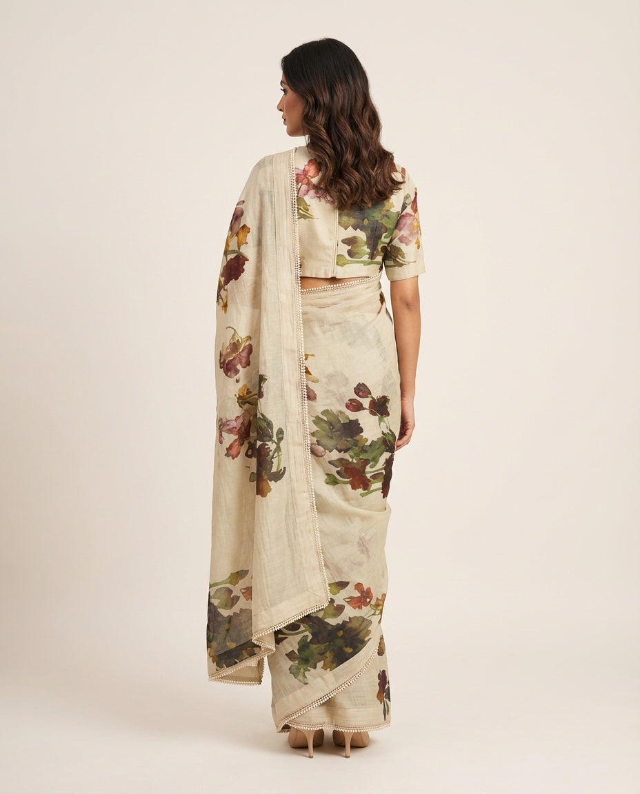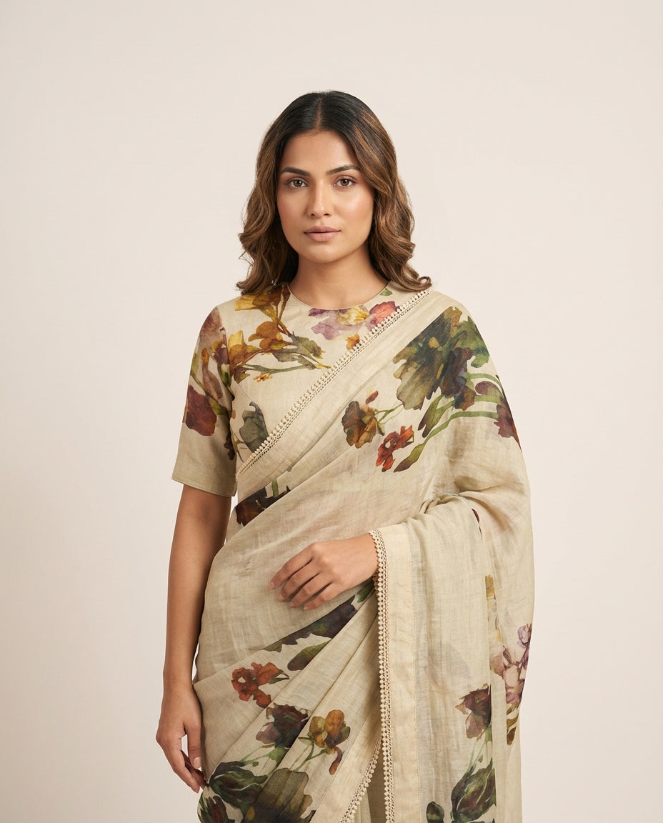 Blushbreeze Olive Green Saree with Blouse