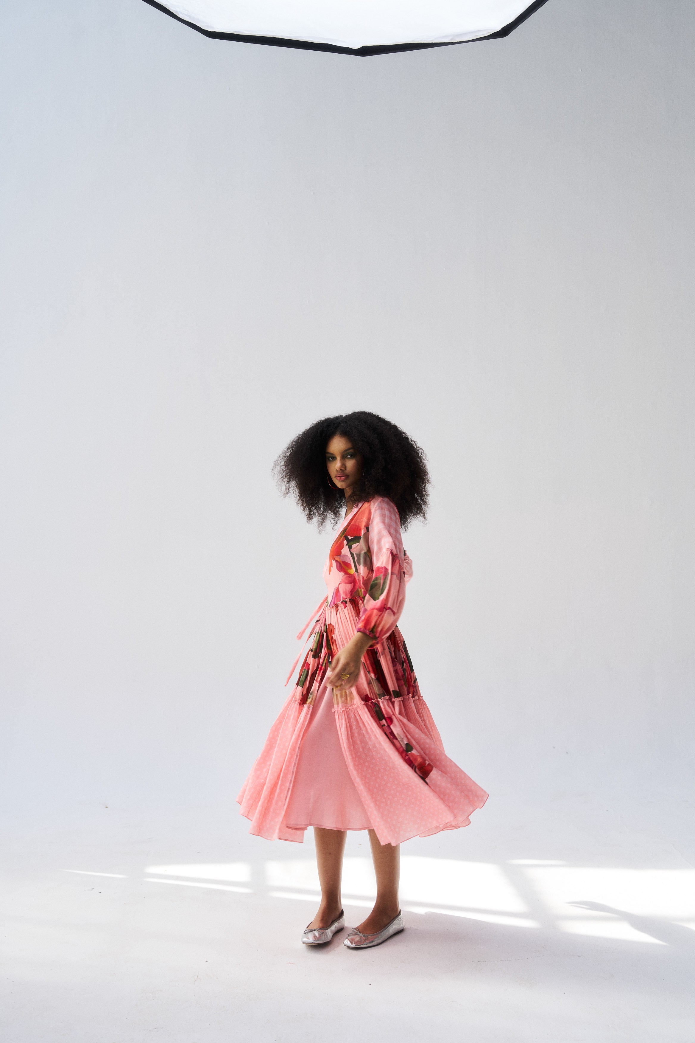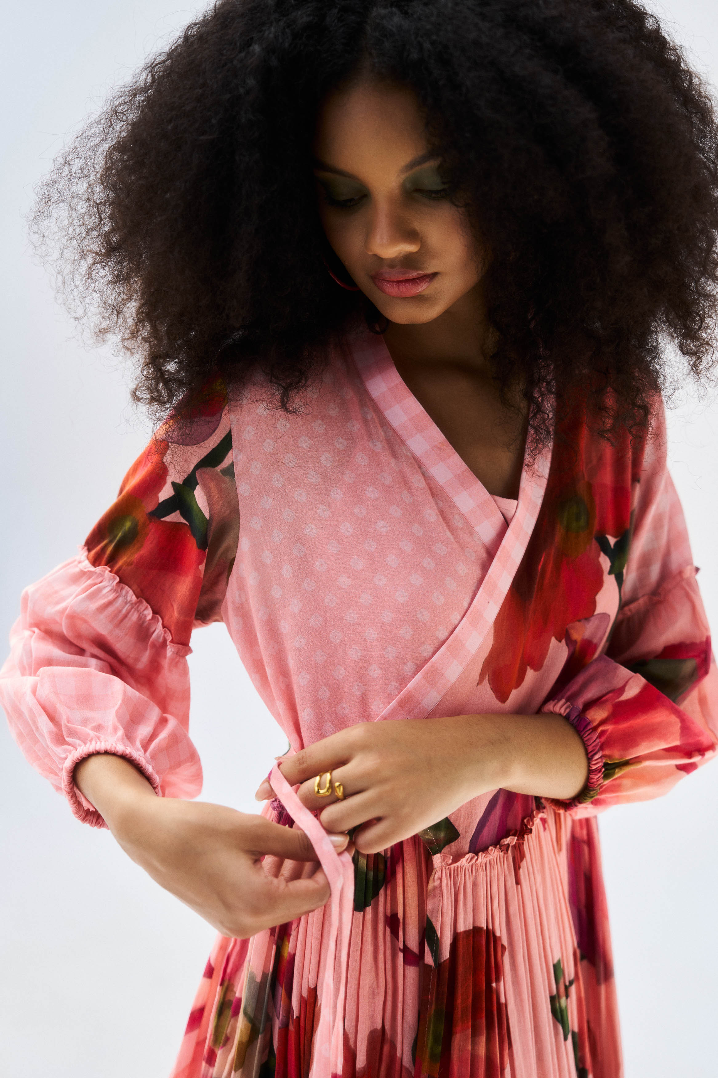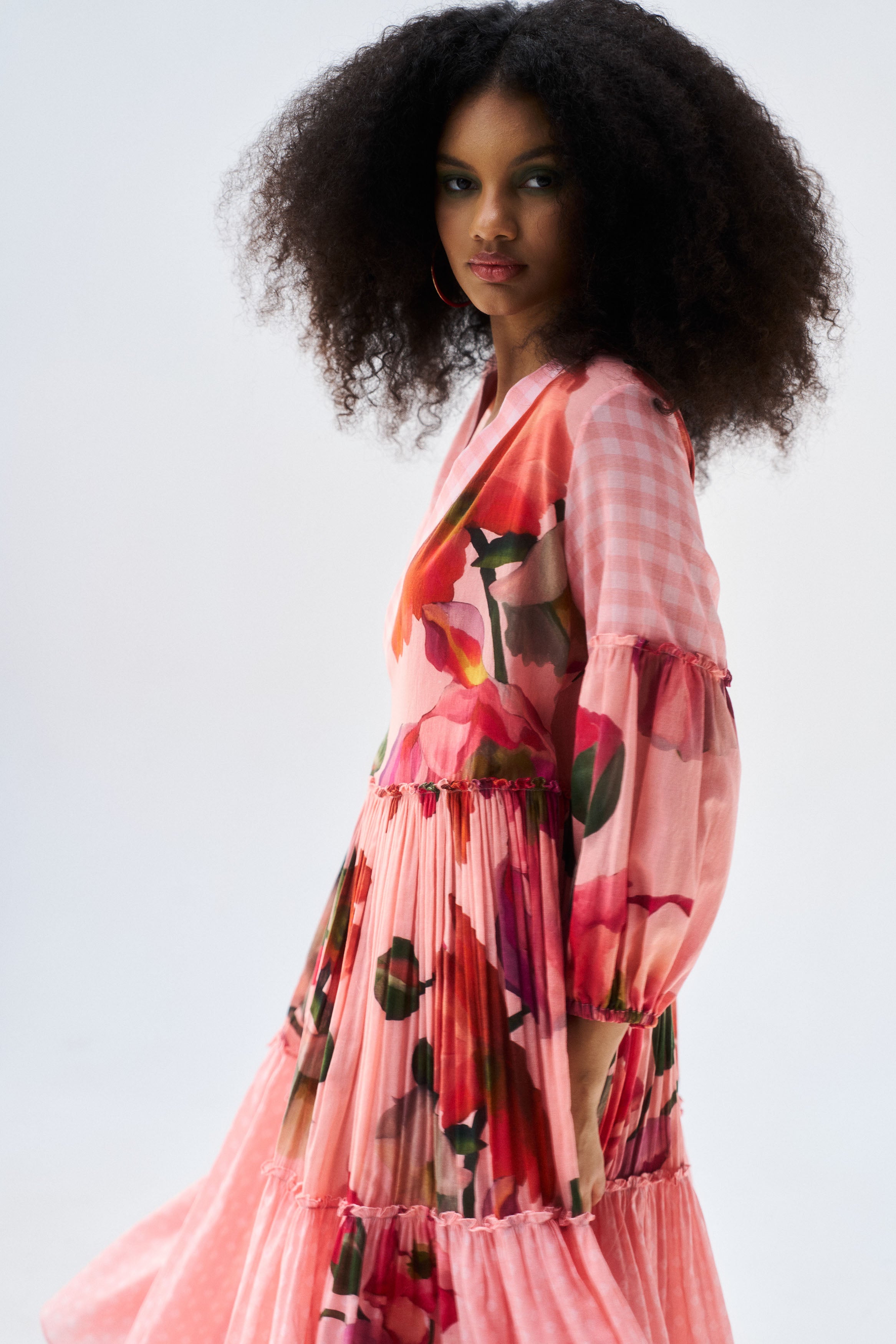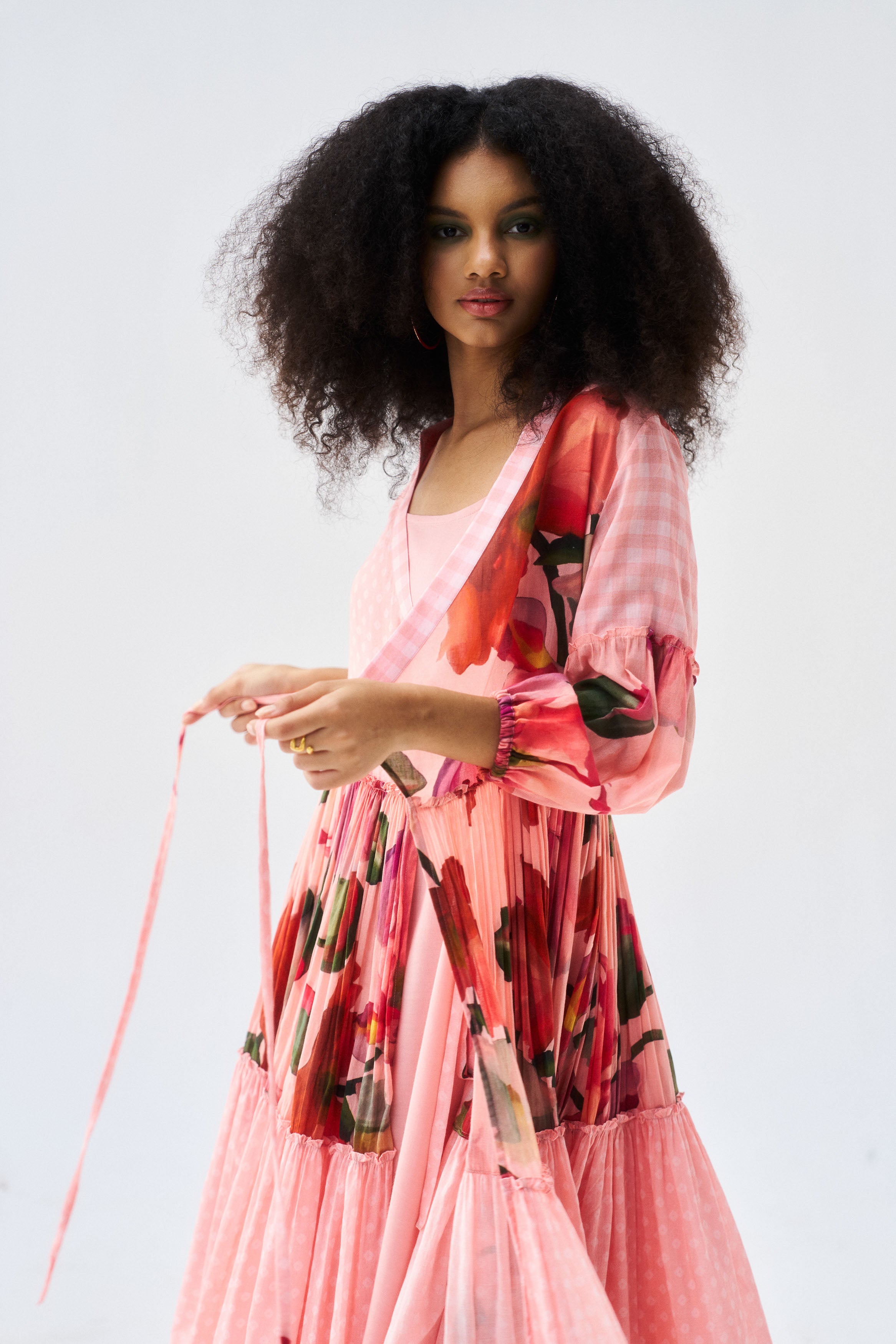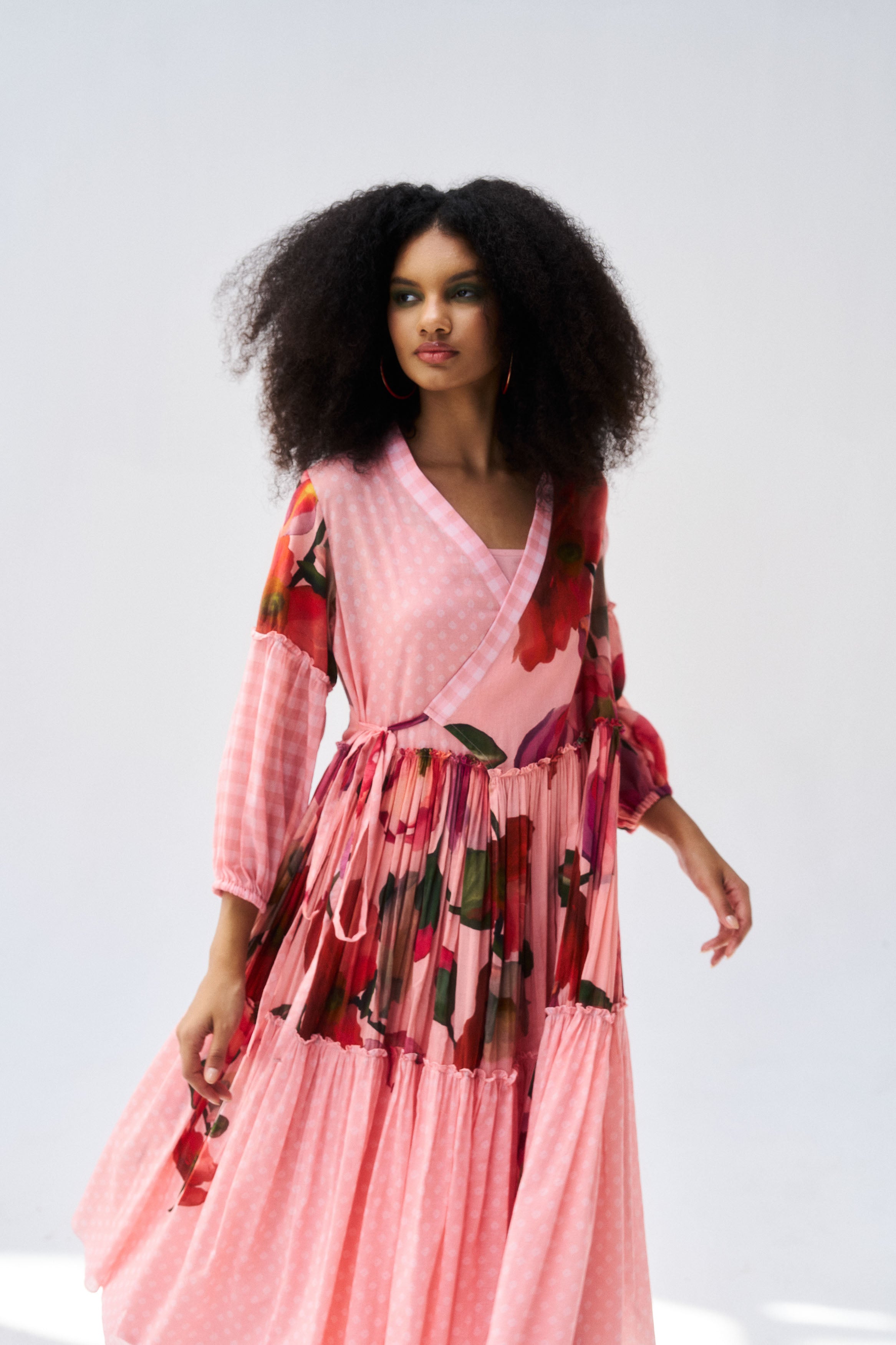 Description: A flattering peach mul mul wrap dress with timeless appeal.