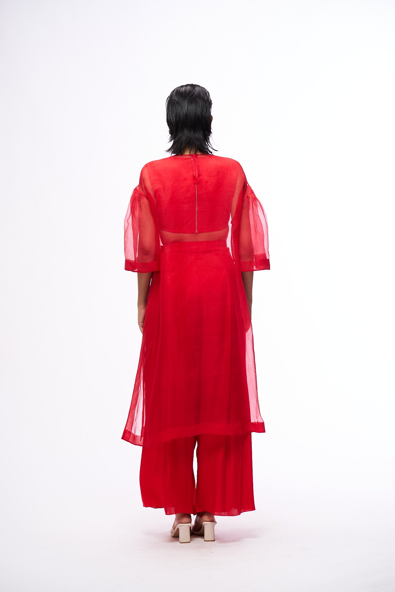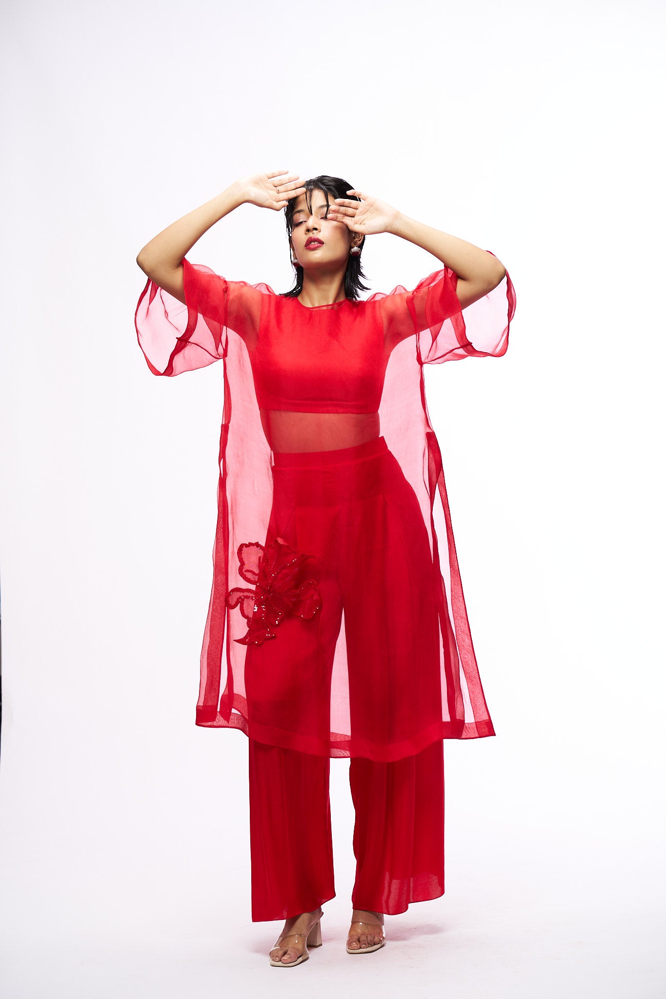 Description - Daisy Red Co-Ord set with Organza Jacket