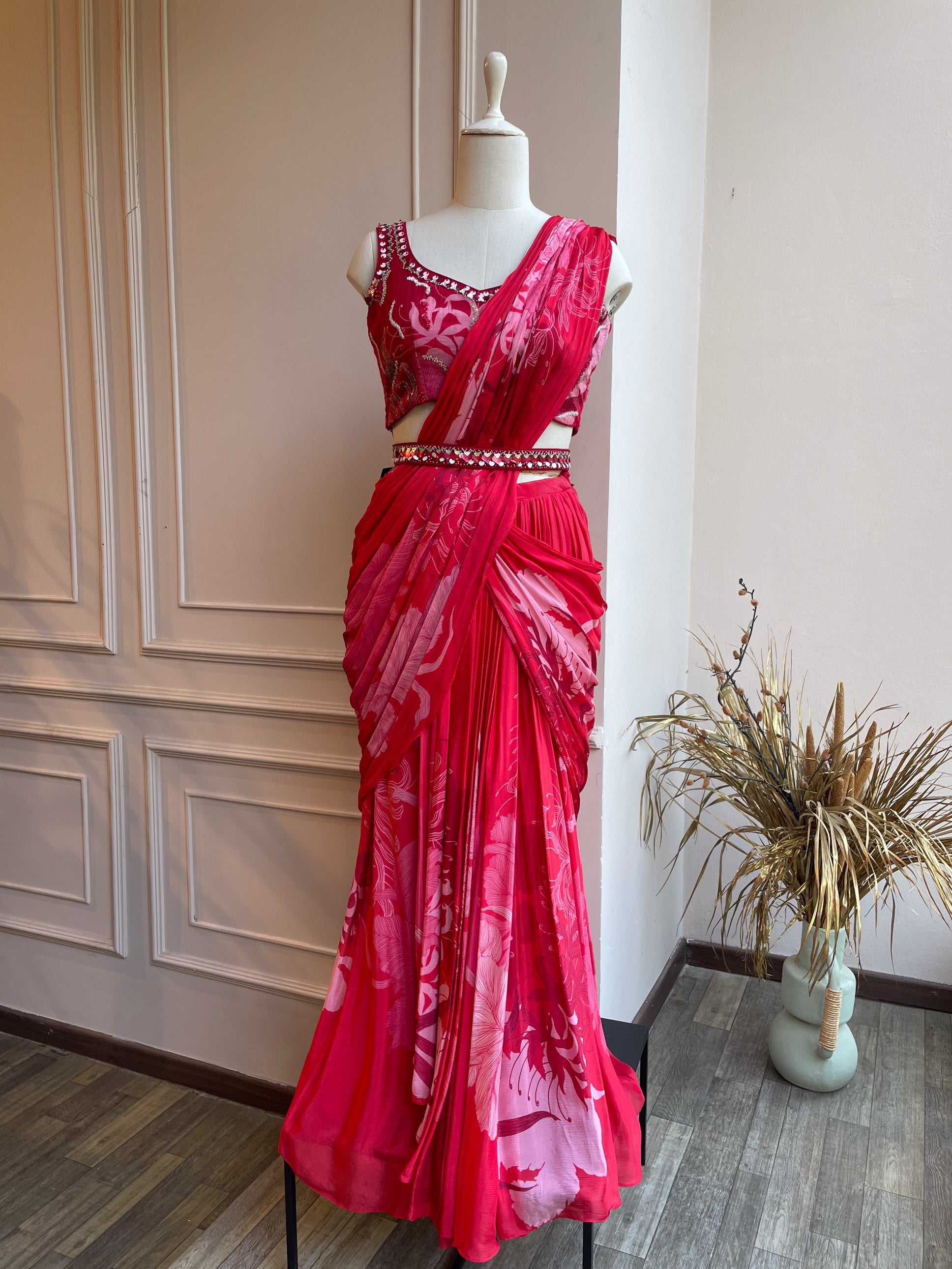 Nora drape saree - Crimson RTS