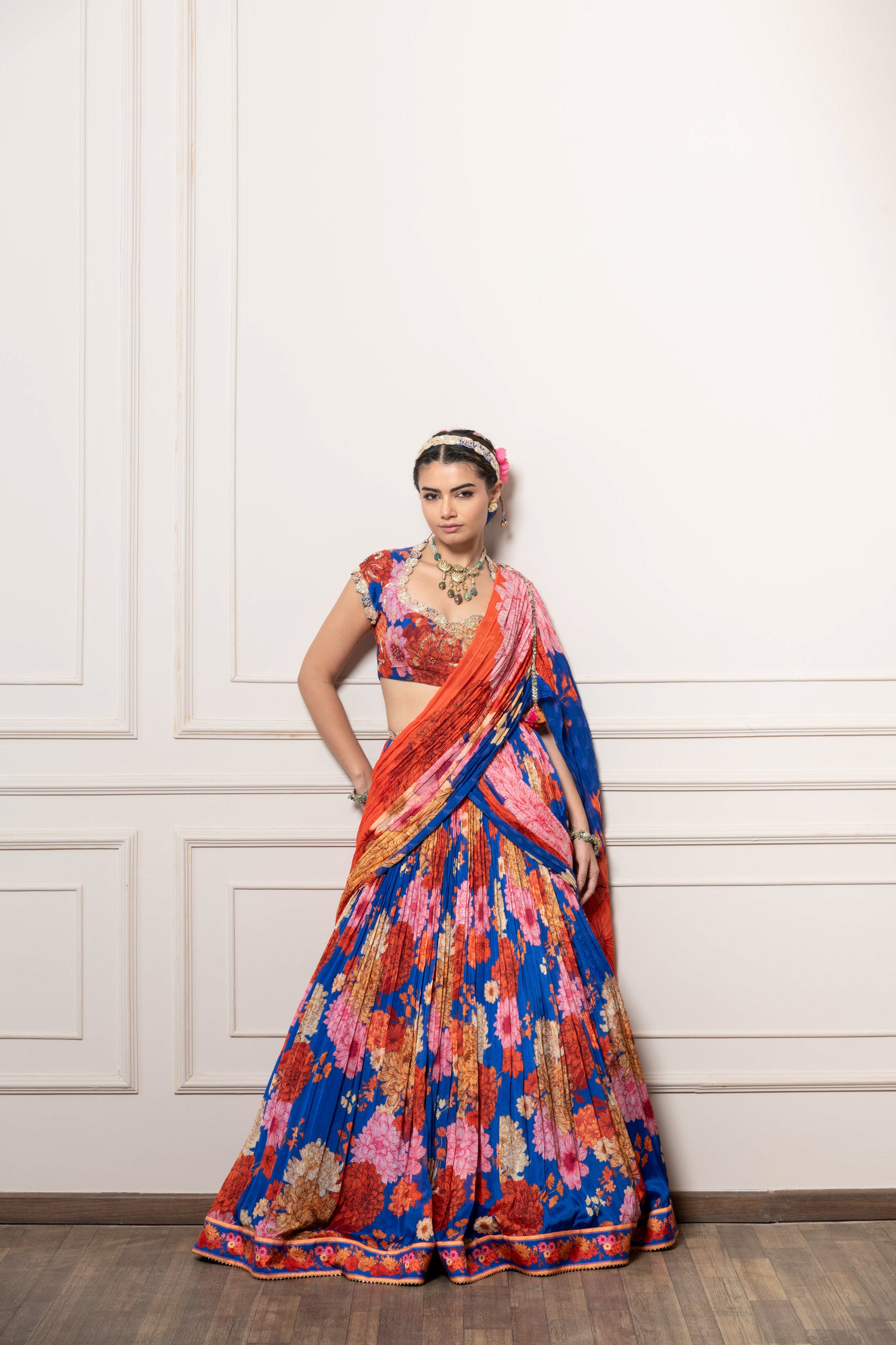 Lipi predraped lehenga set - Blue