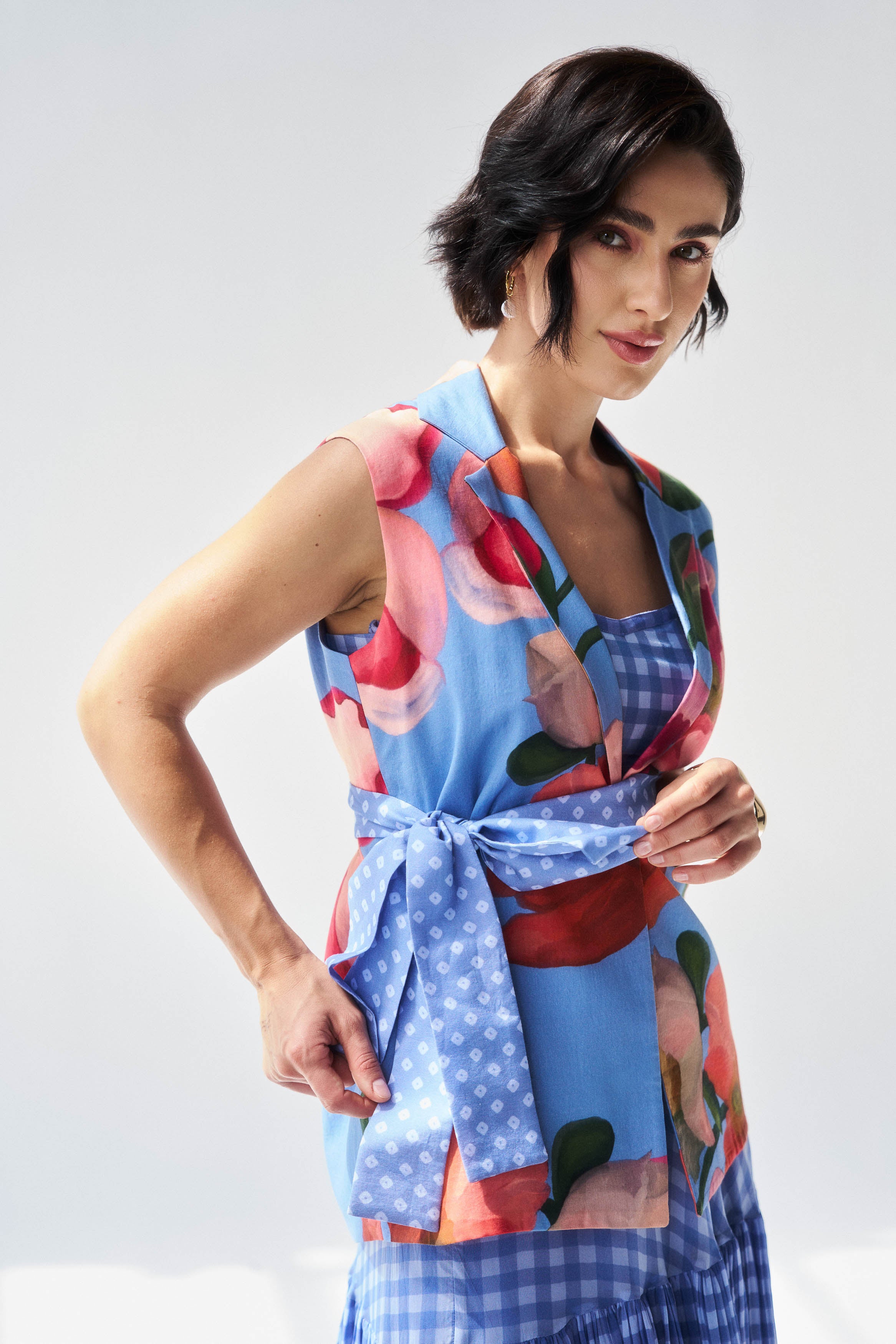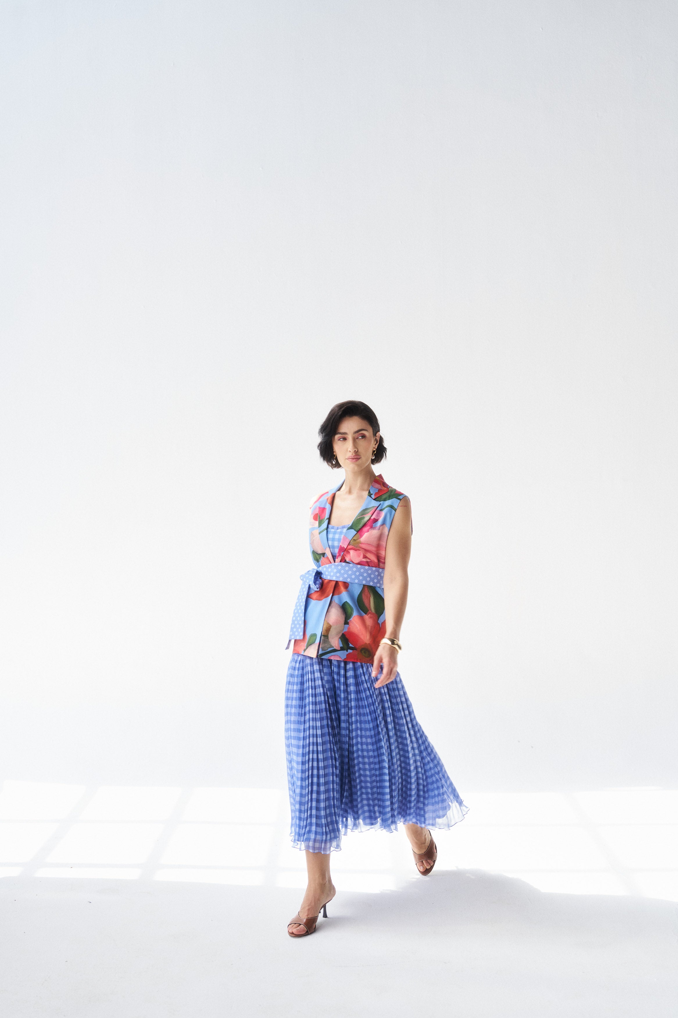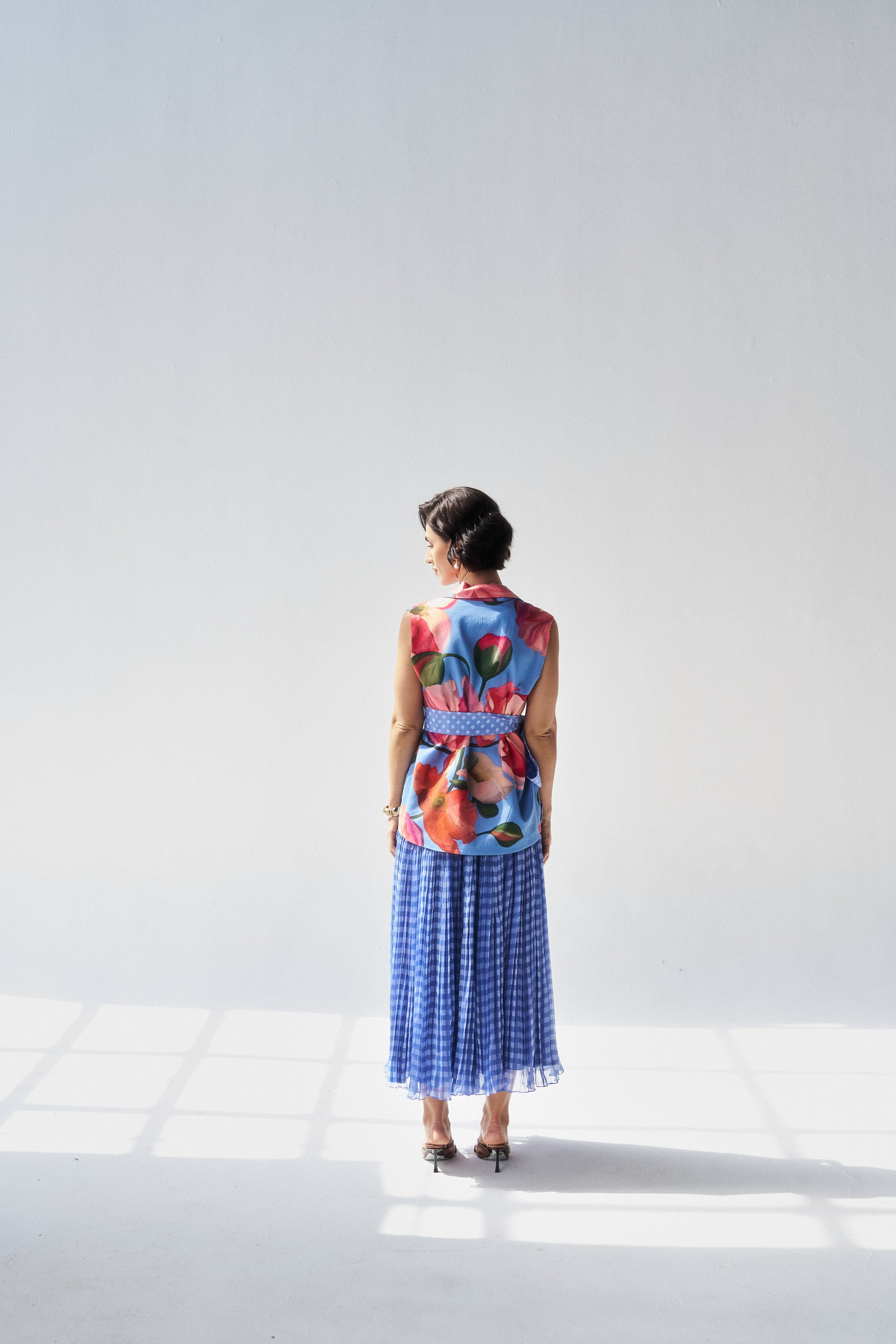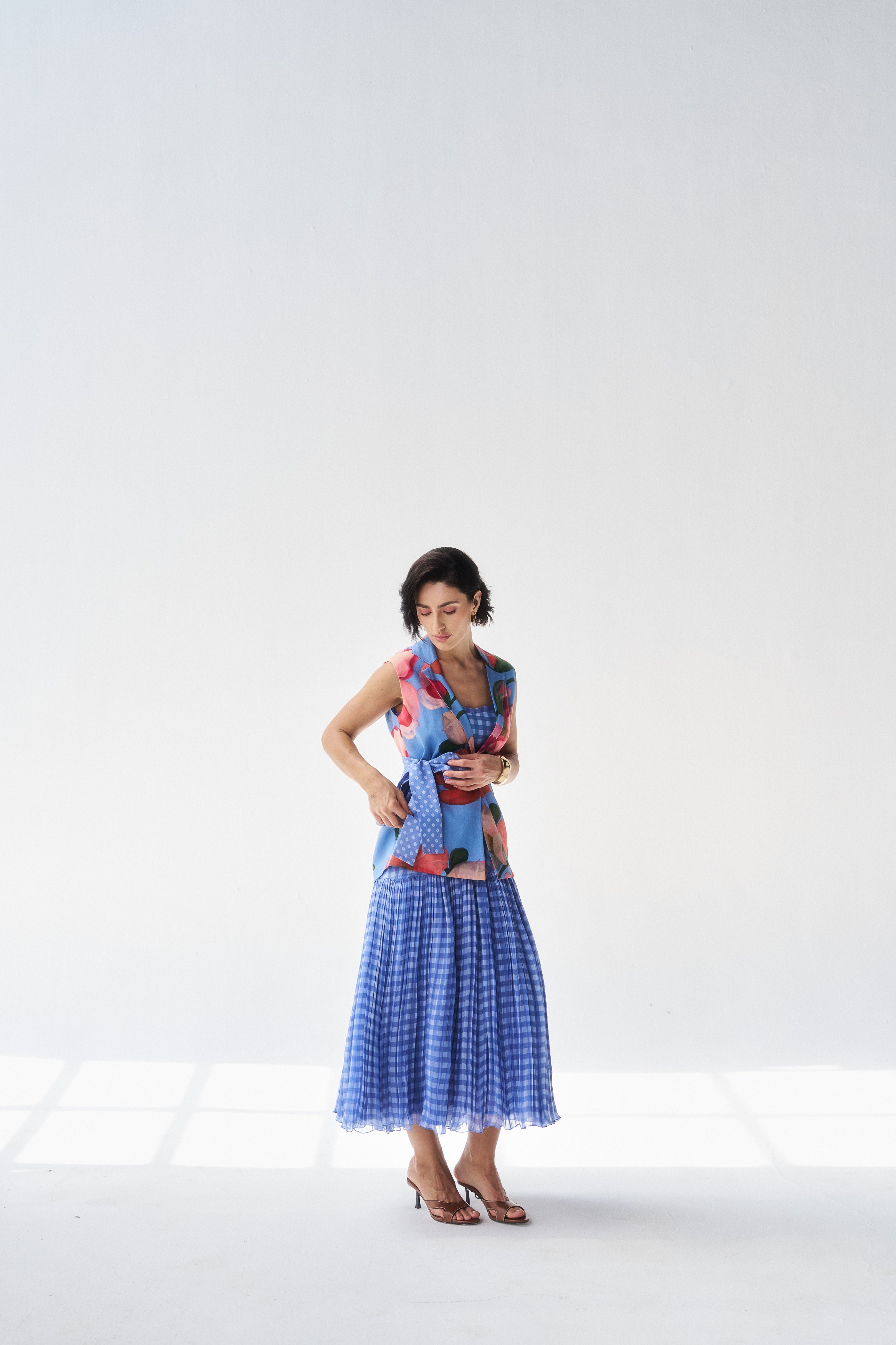 Description: A serene fern blue co-ord set blending mul mul comfort with organza elegance.