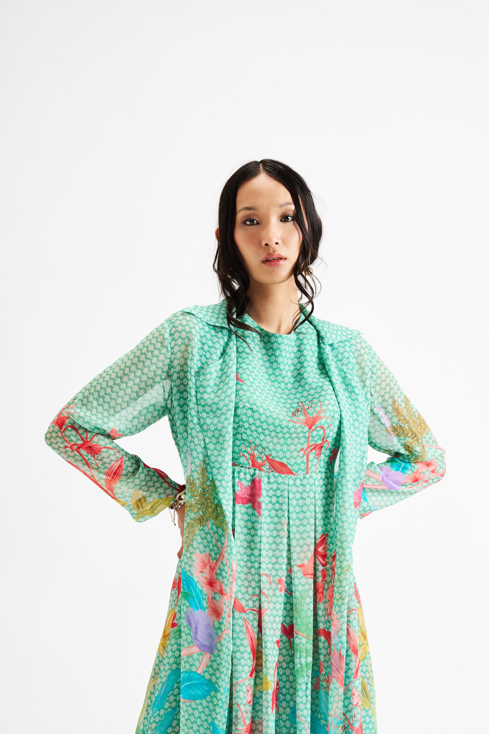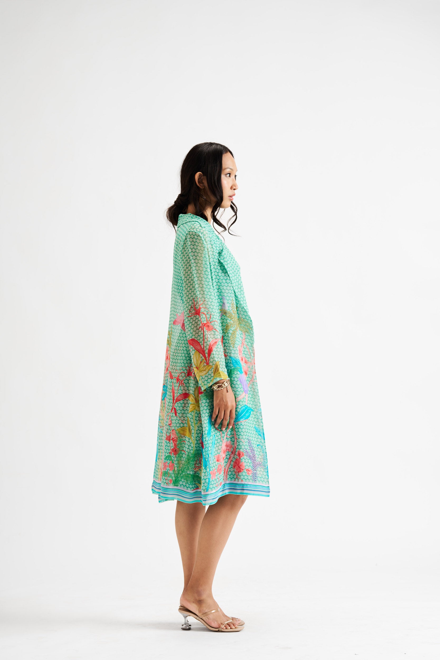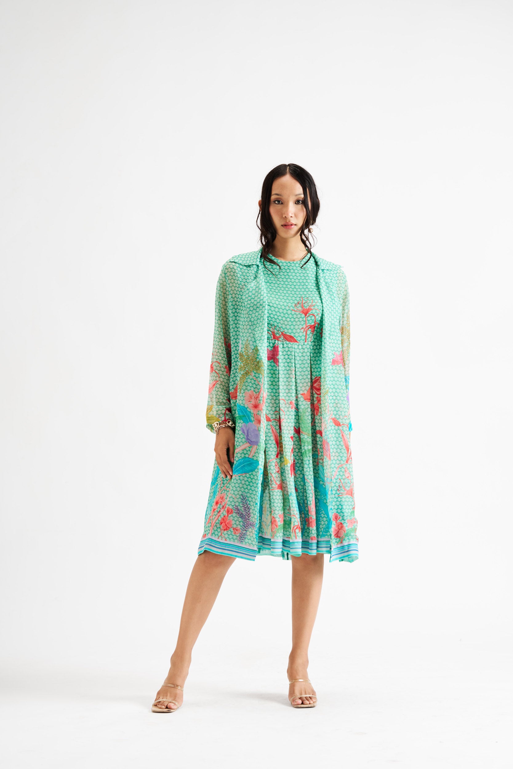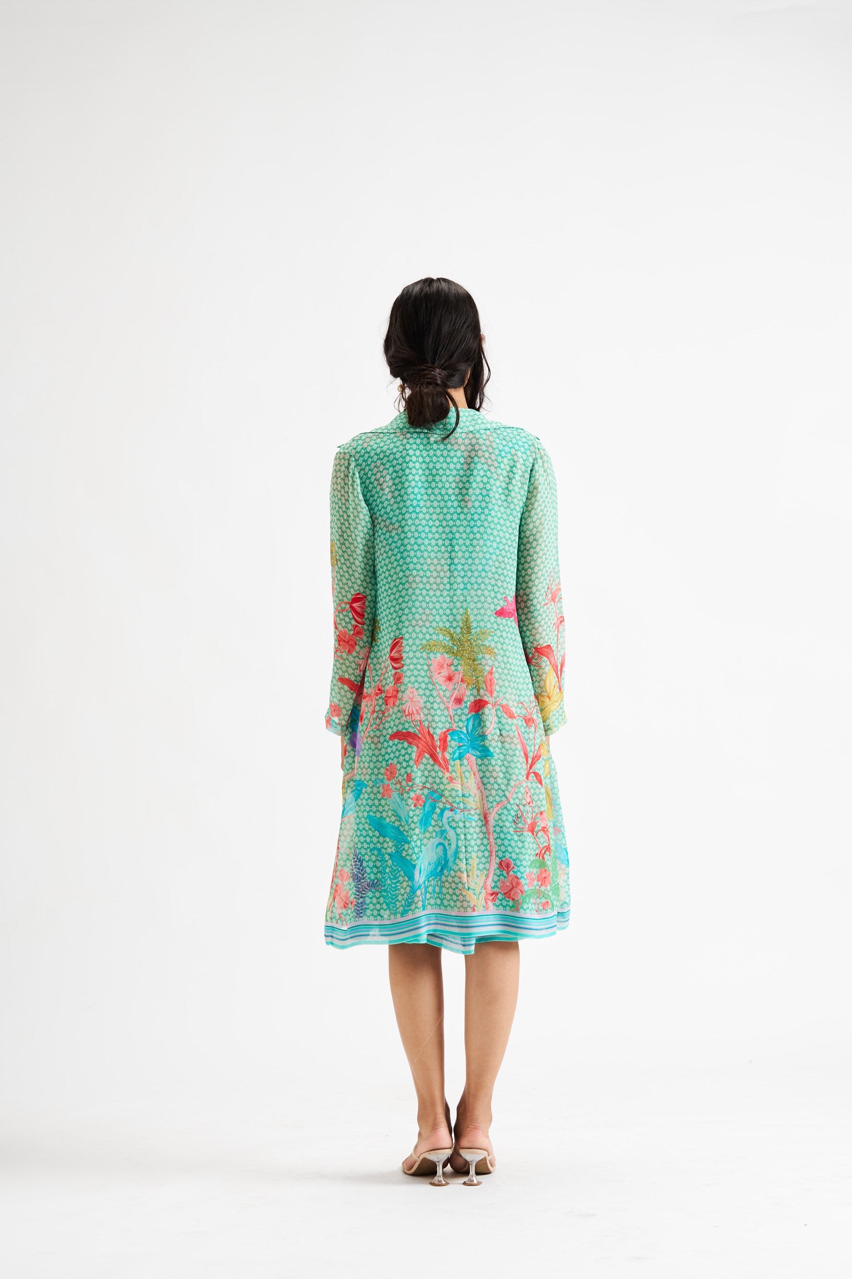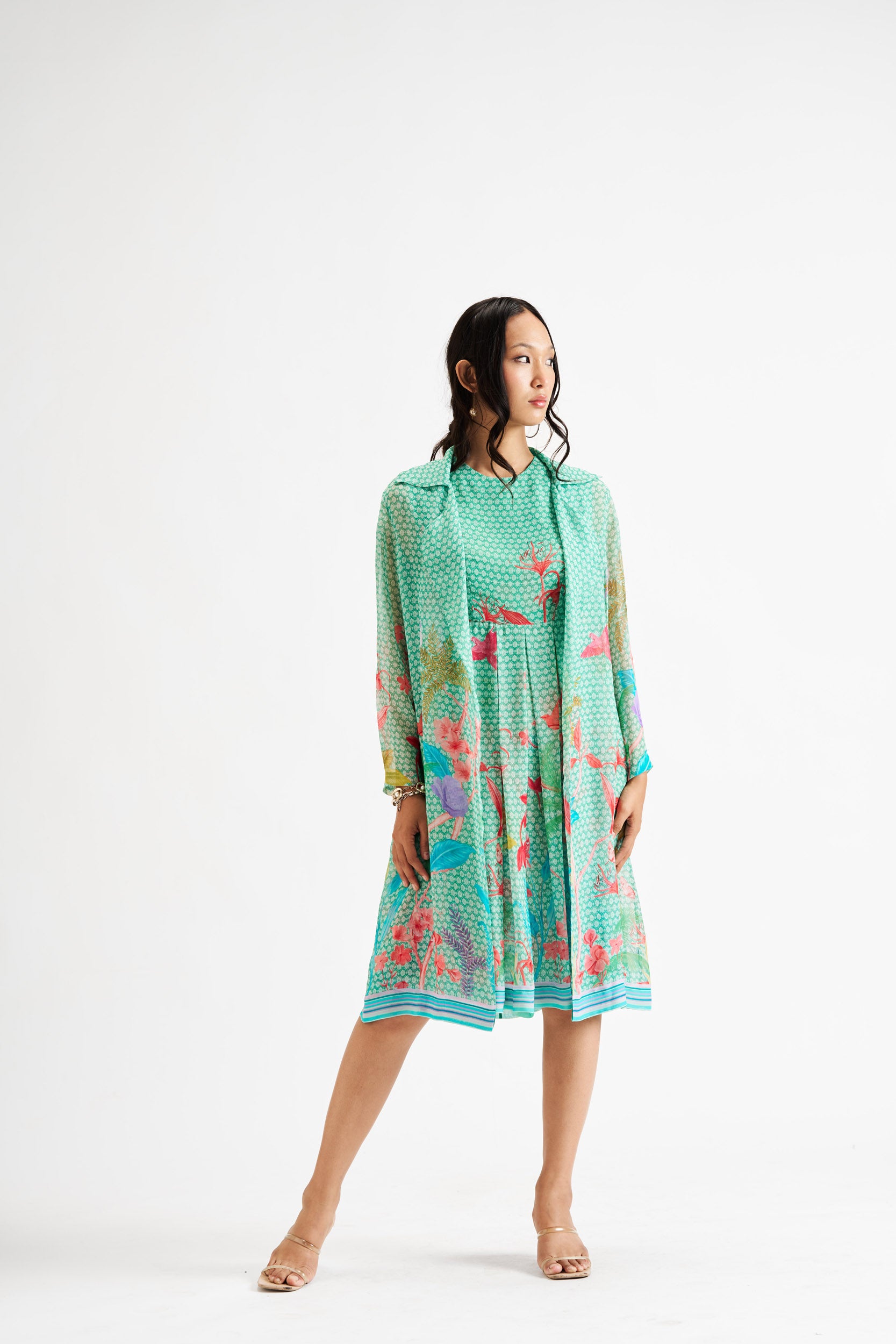 Description: A chic short jacket dress in green, perfect for a modern and refined look.