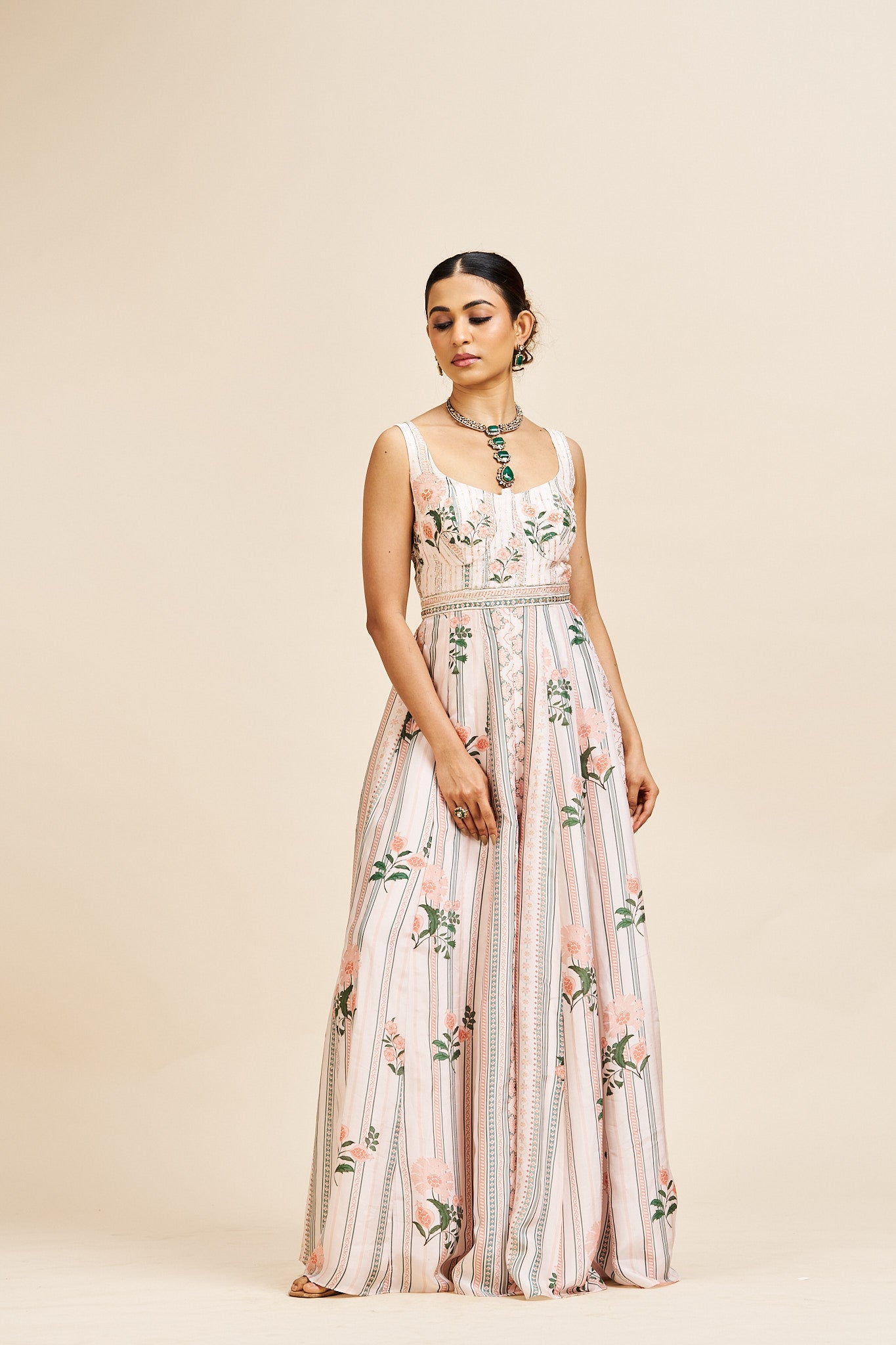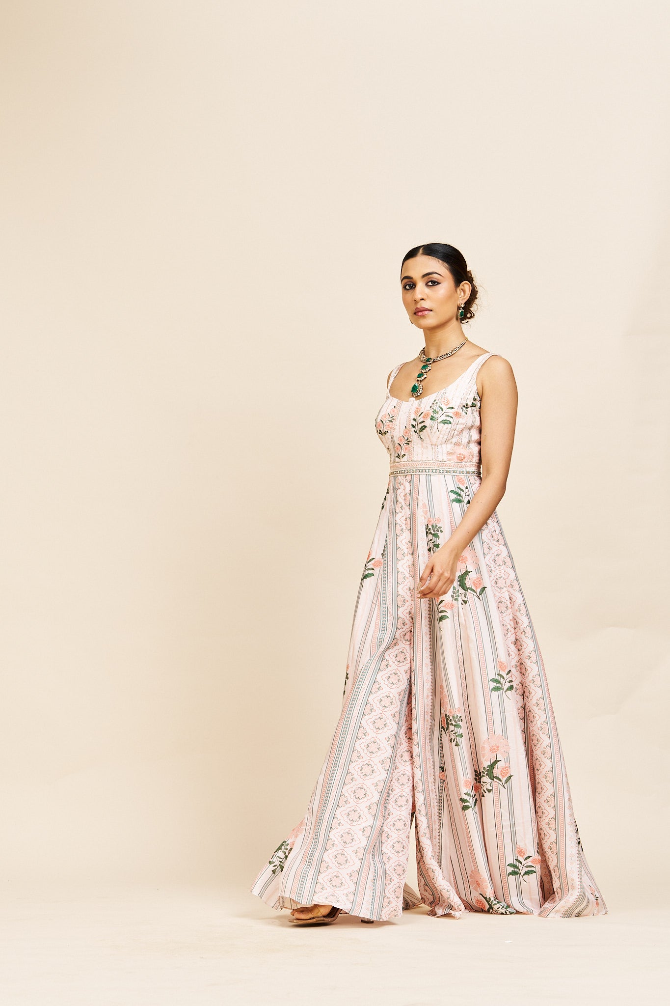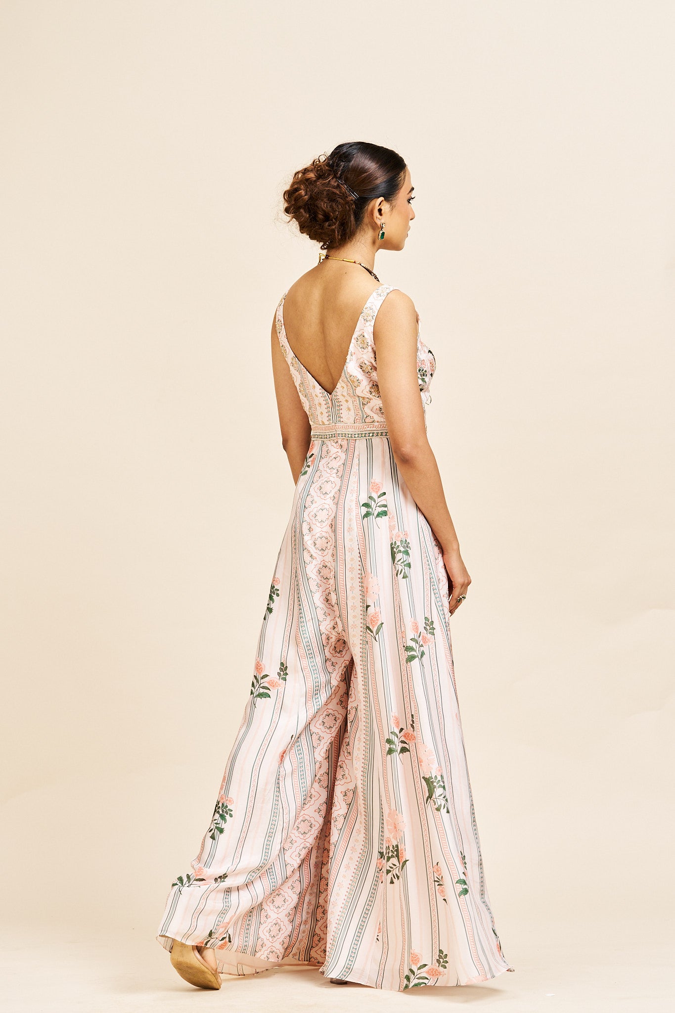 Description: Trendy ivory jumpsuit delivering modern festive appeal.