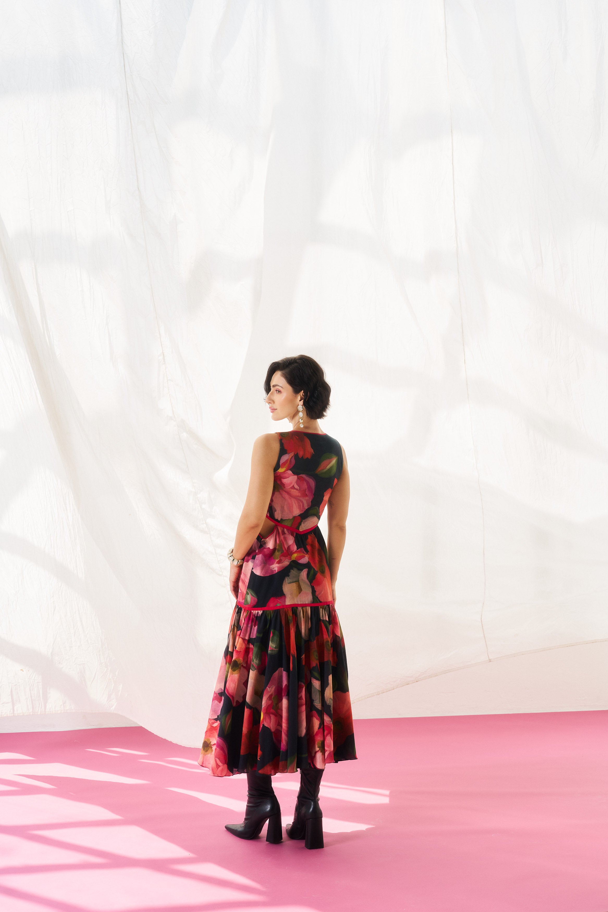 Description: A statement black mul mul ensemble designed for elevated evenings.