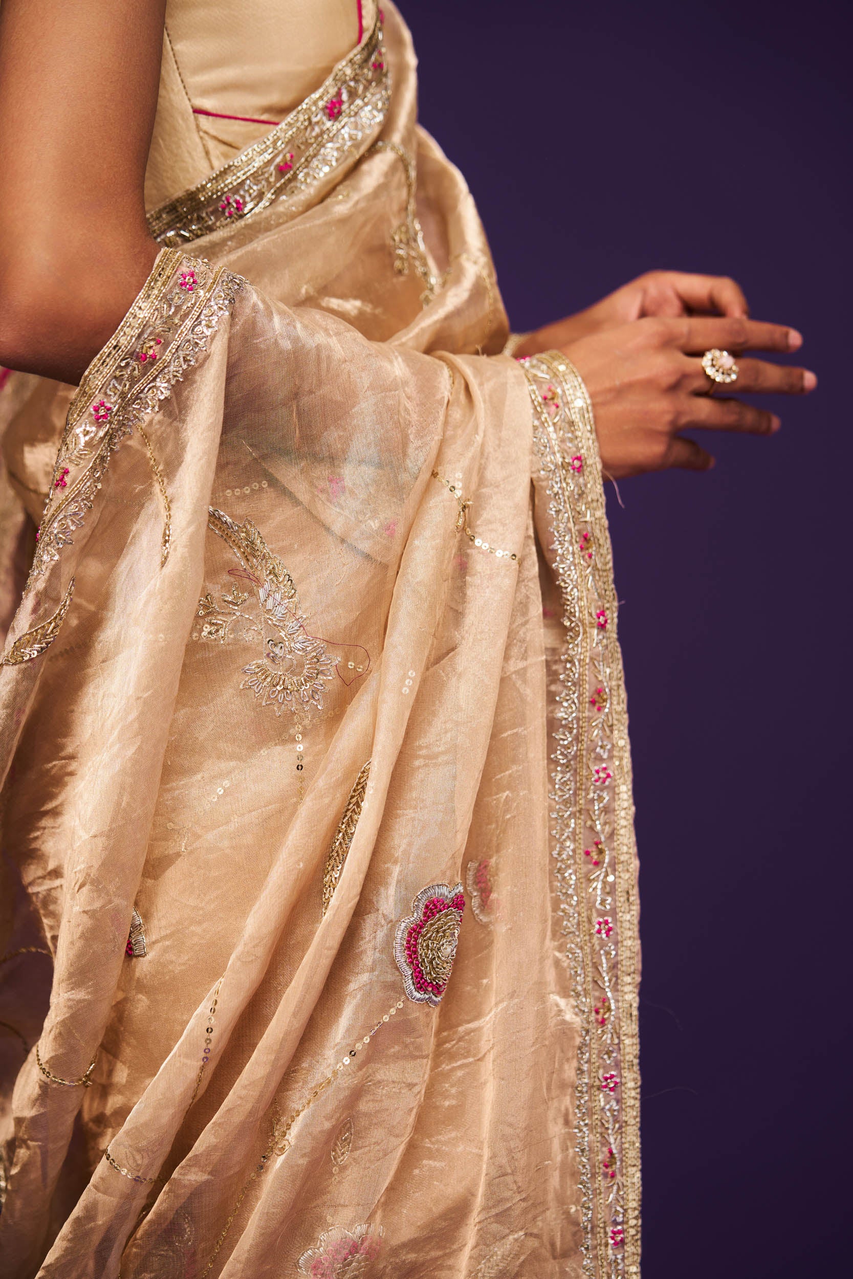 Hrudaya Tissue Embroidery Saree and Blouse Set RTS