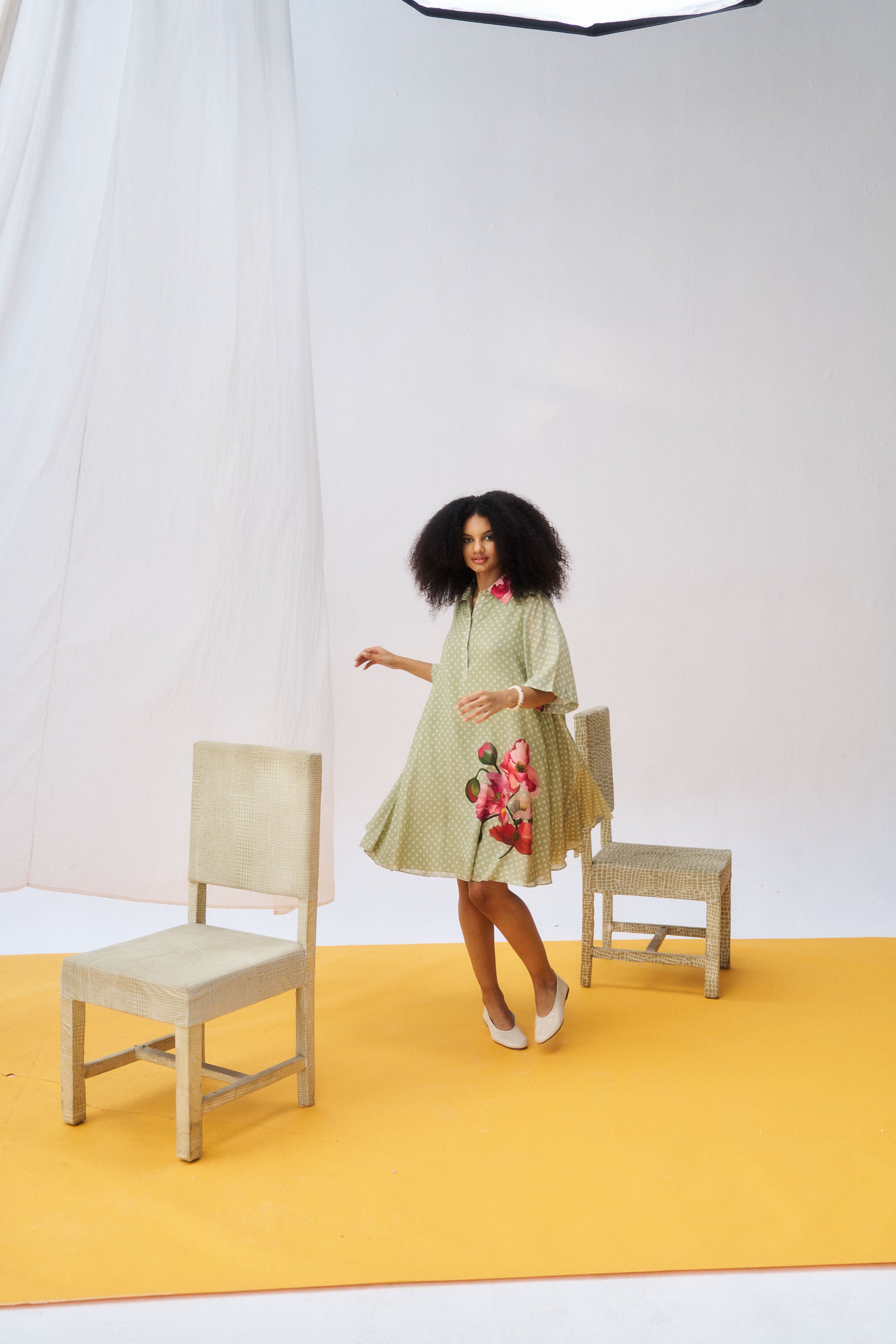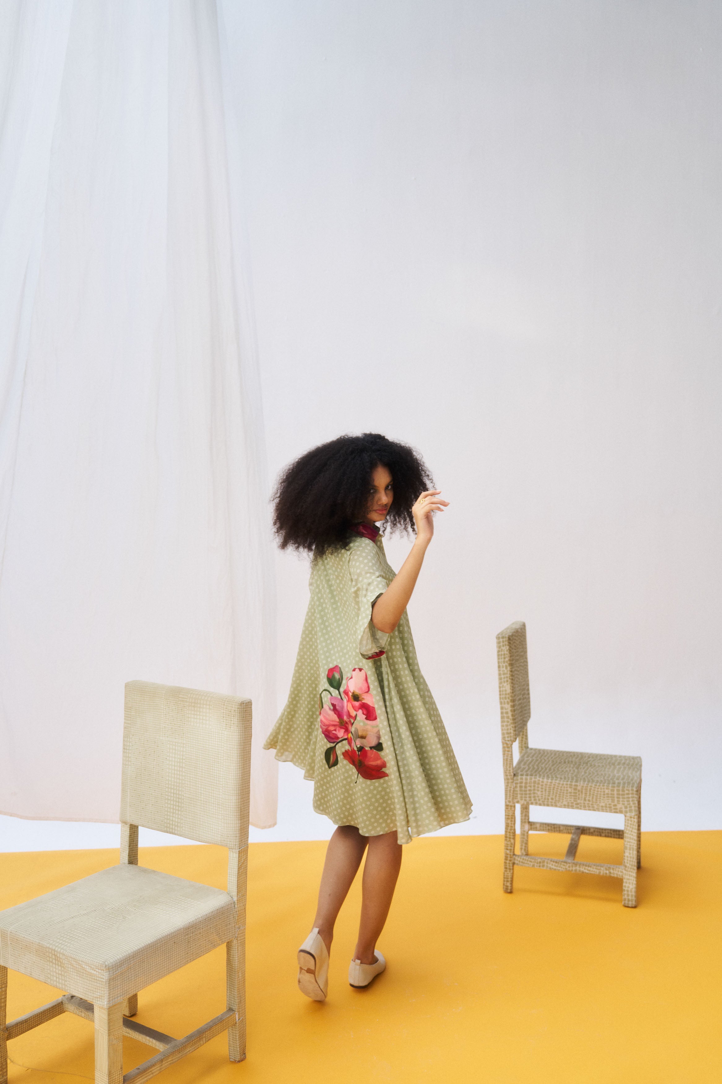 Description: A minimal moss green mul mul silhouette tailored for everyday elegance.