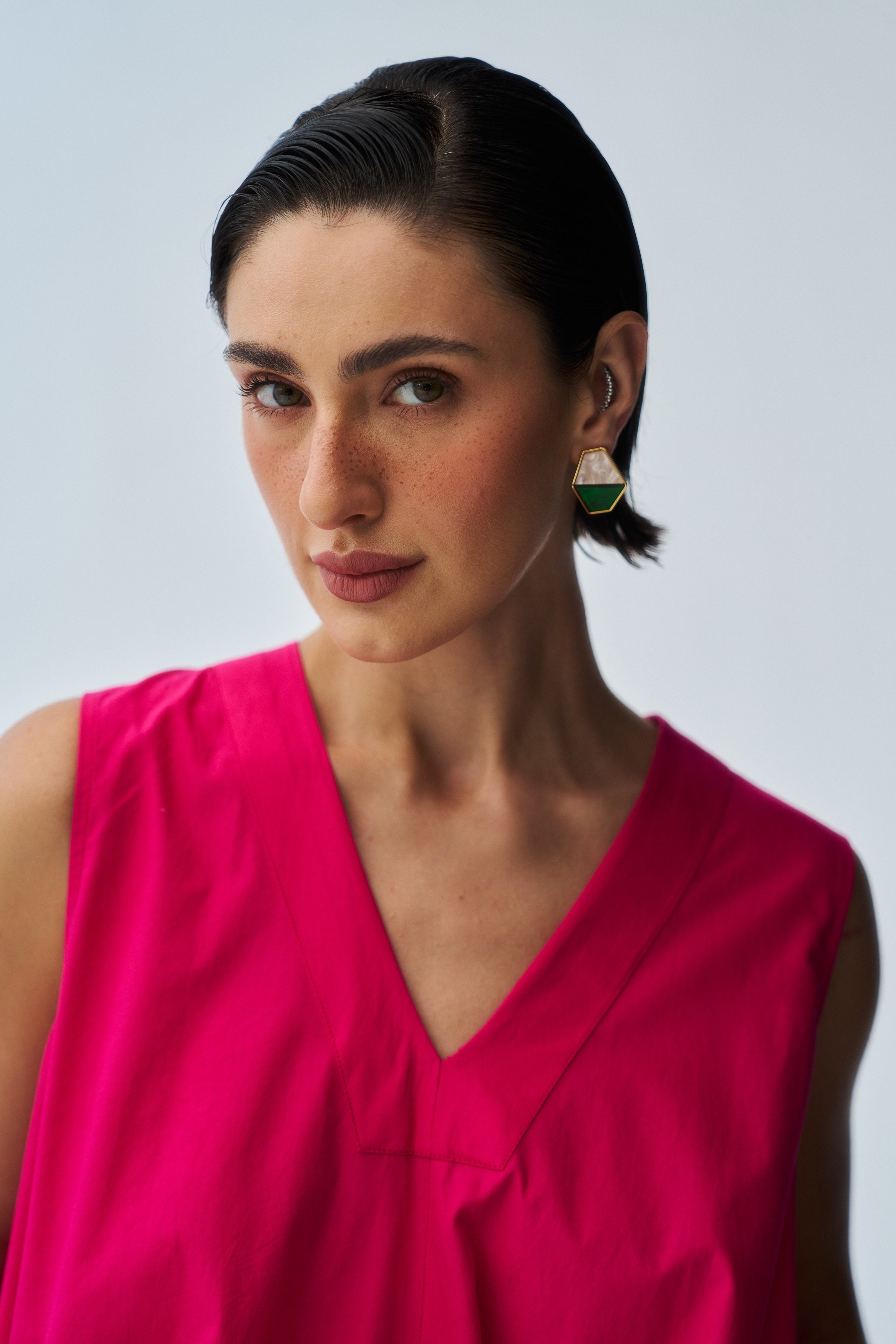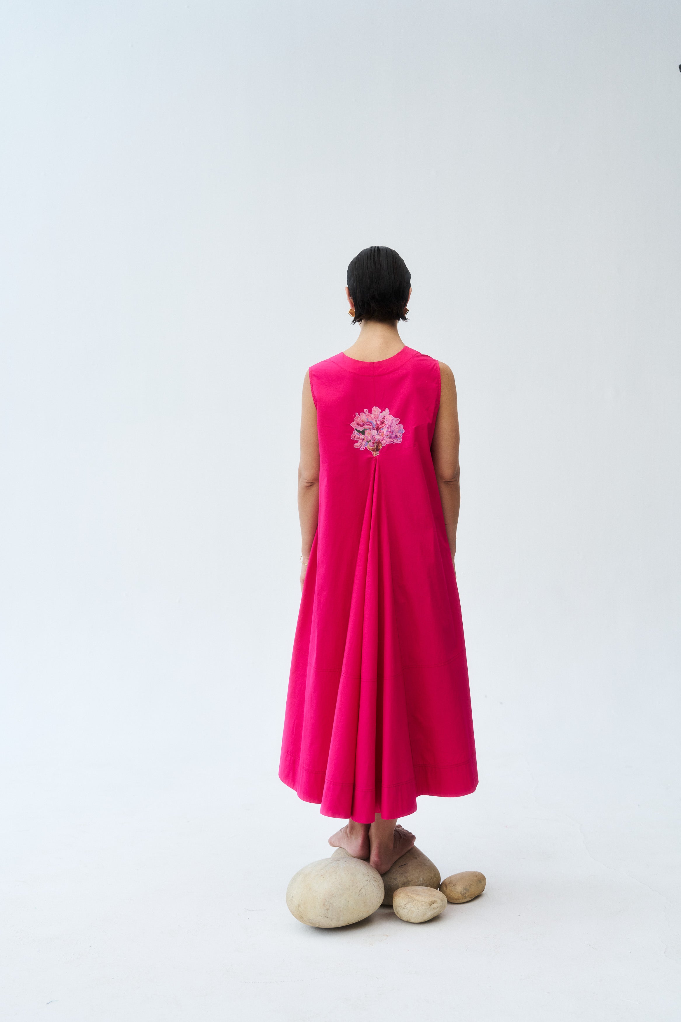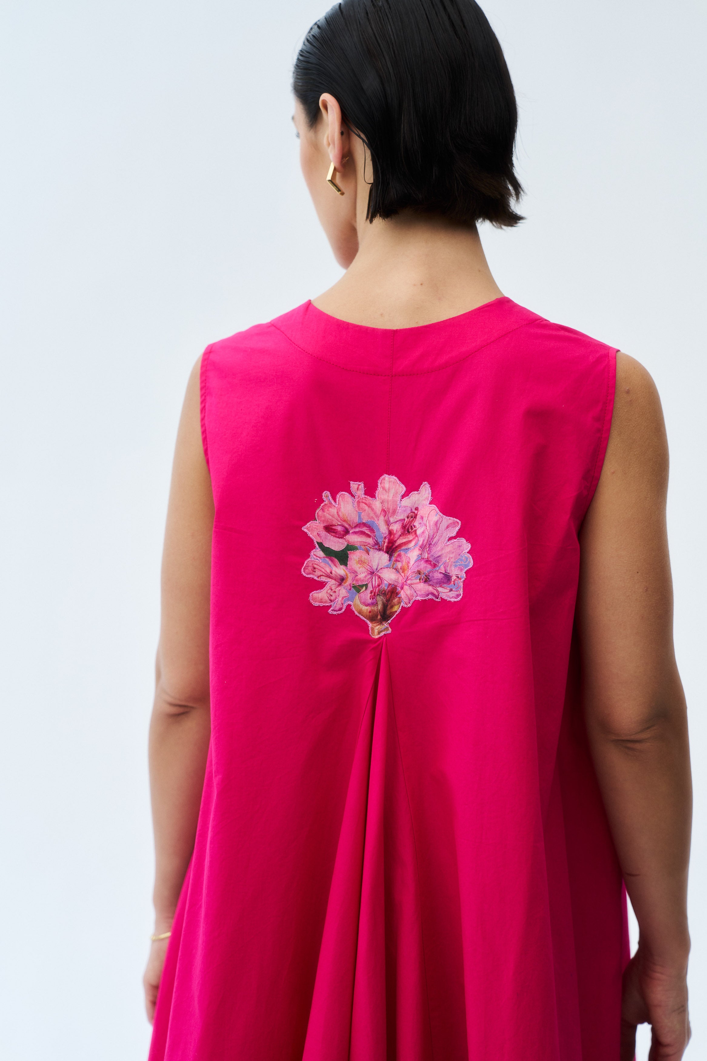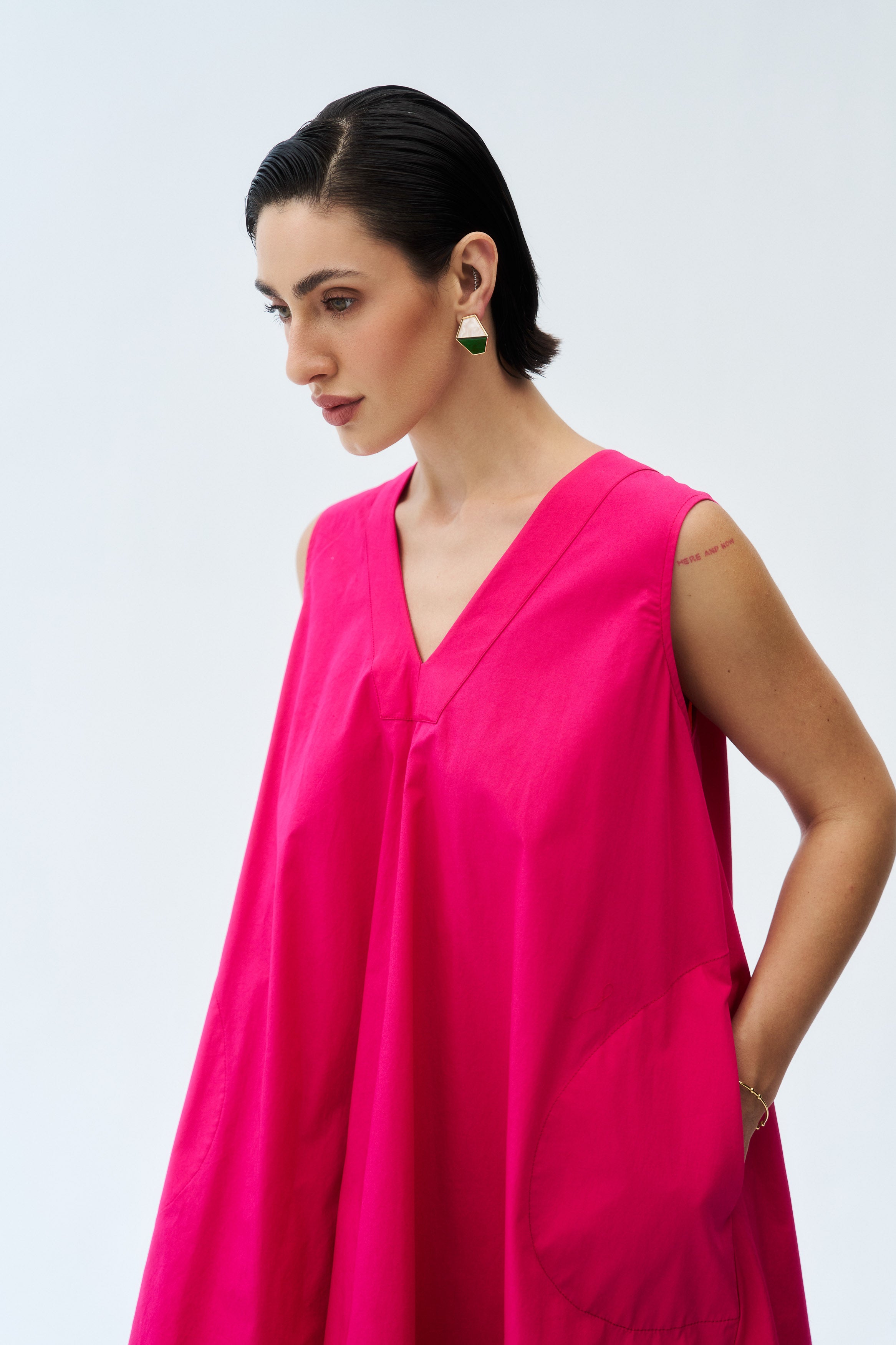 Description: A striking hot pink dress tailored for bold festive styling.
