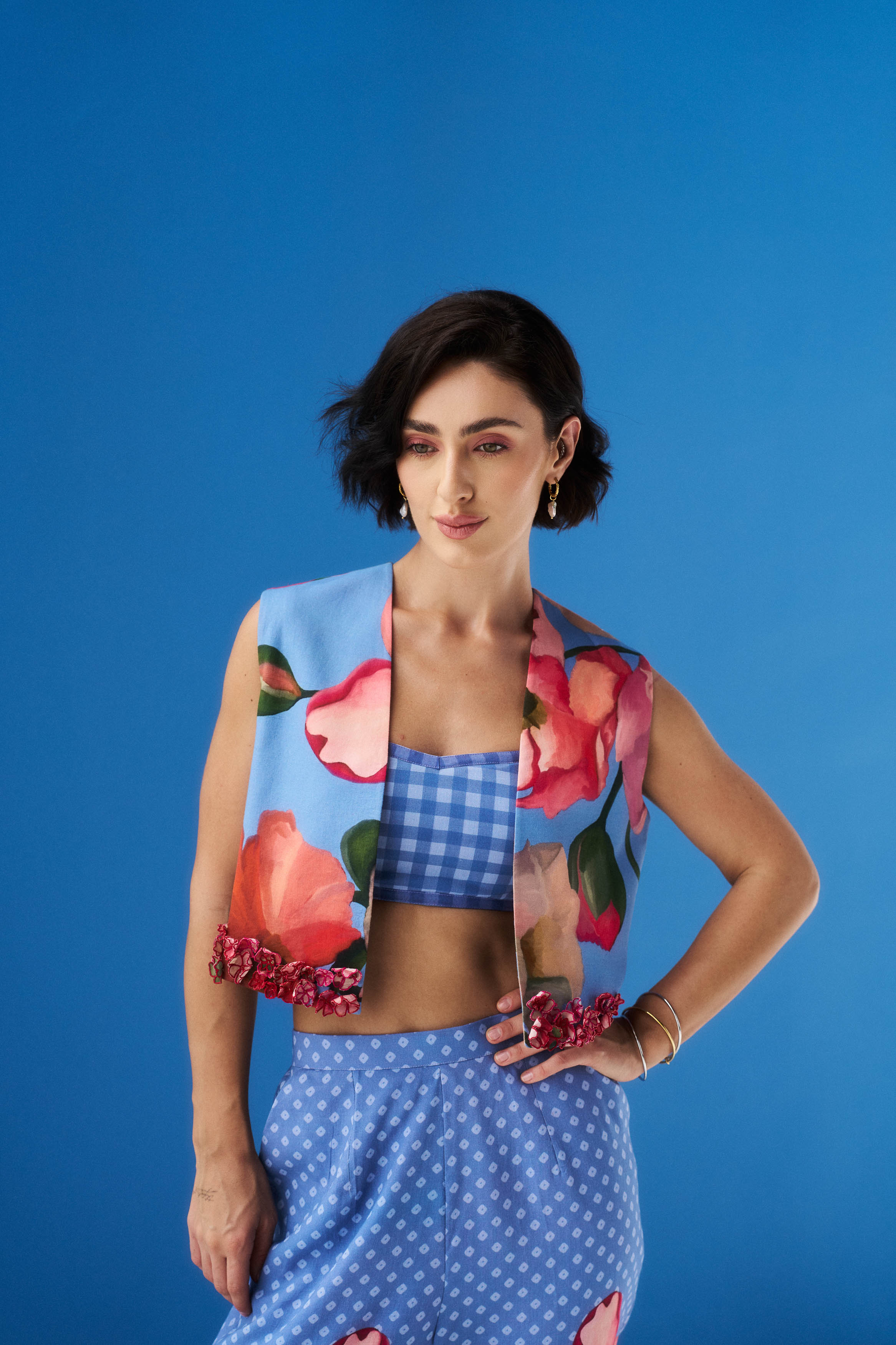 Description: A chic fern blue mul mul co-ord set designed for modern sophistication.