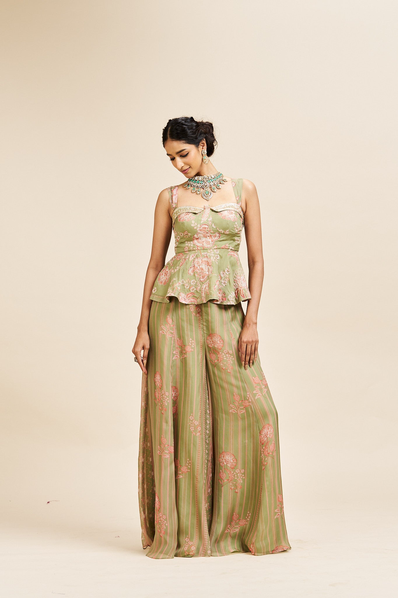 Description: Fresh green peplum set for a stylish and youthful festive vibe.