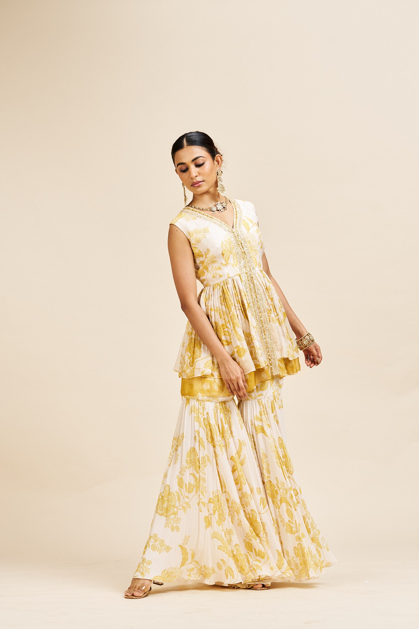 Description: Chic ivory sharara set blending comfort with timeless festive charm.