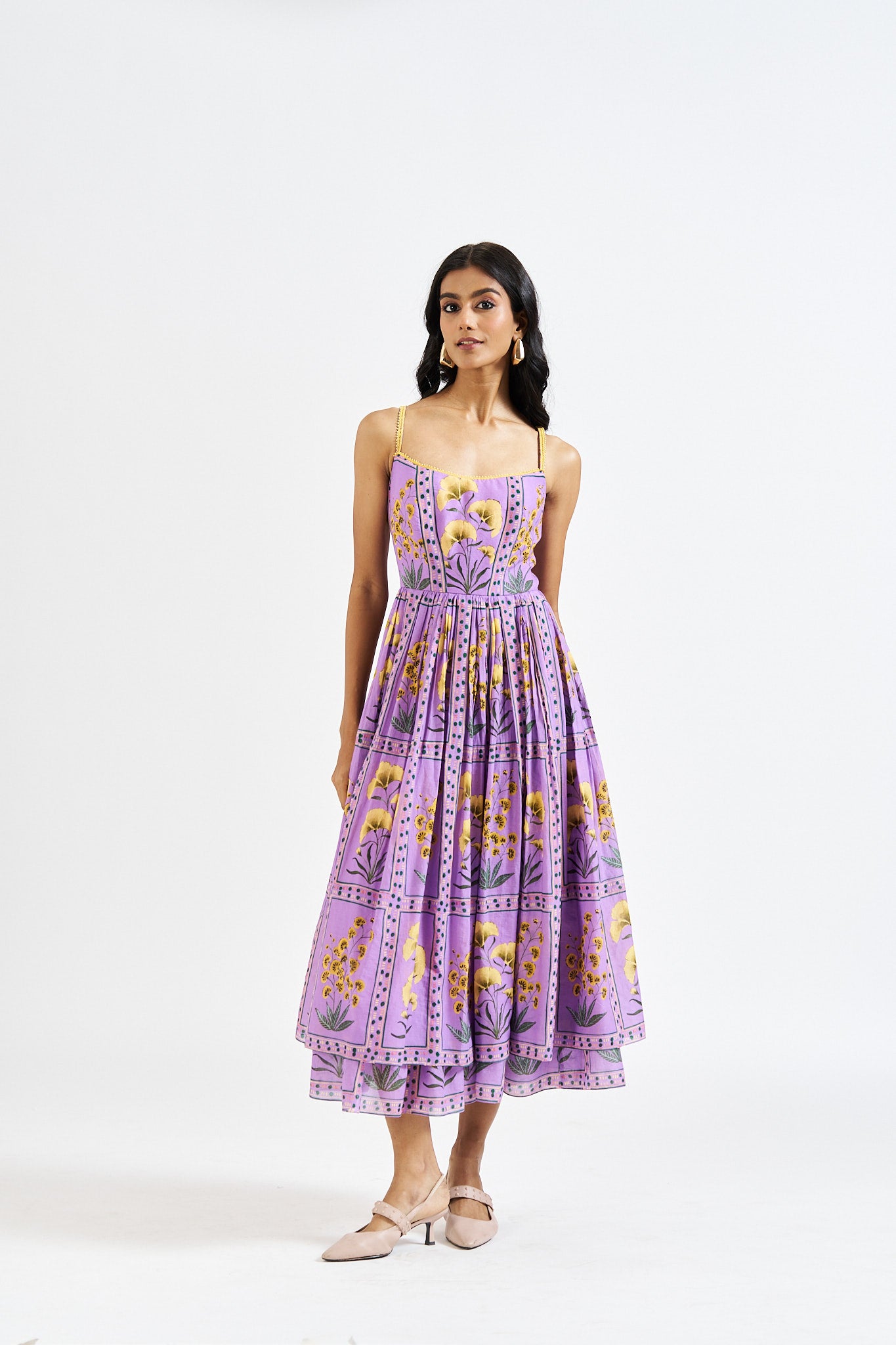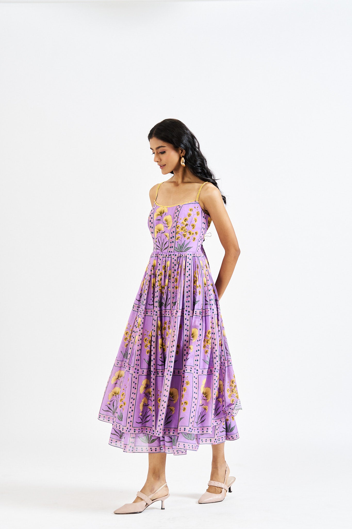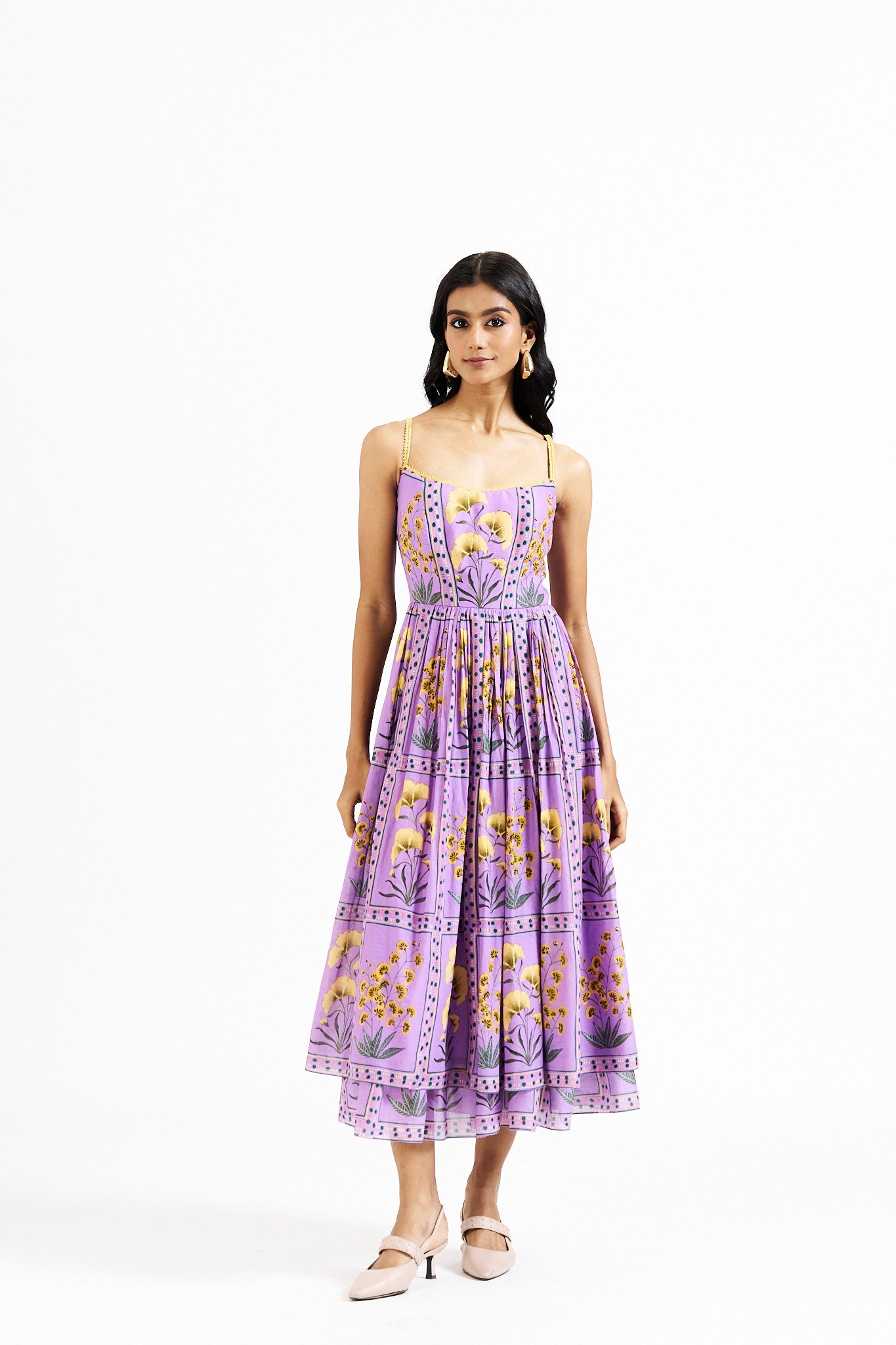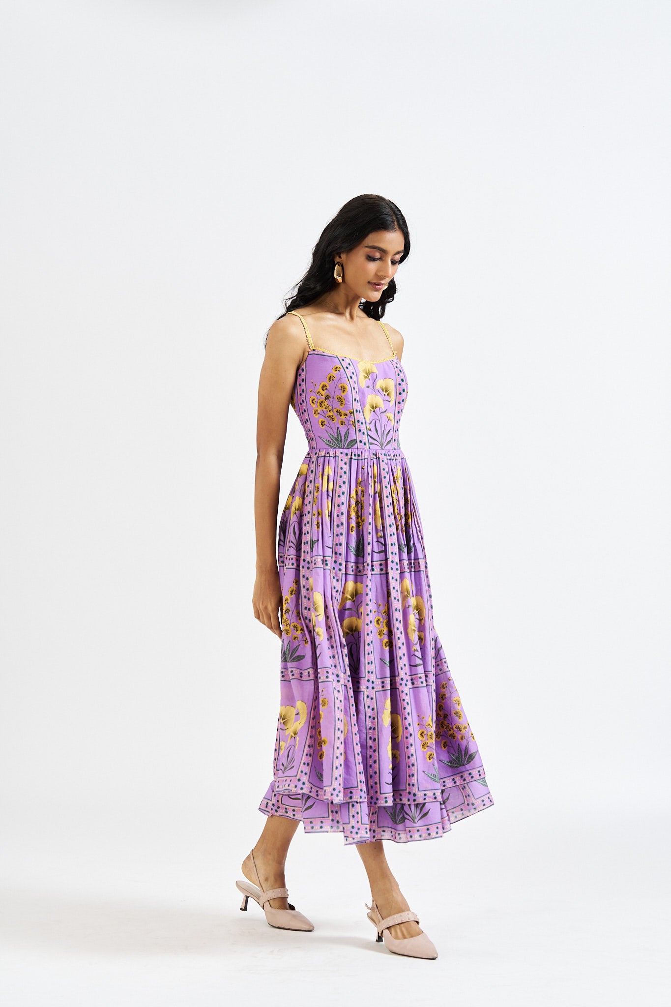 Effortlessly stylish lavender dress with a graceful design for versatile occasions.