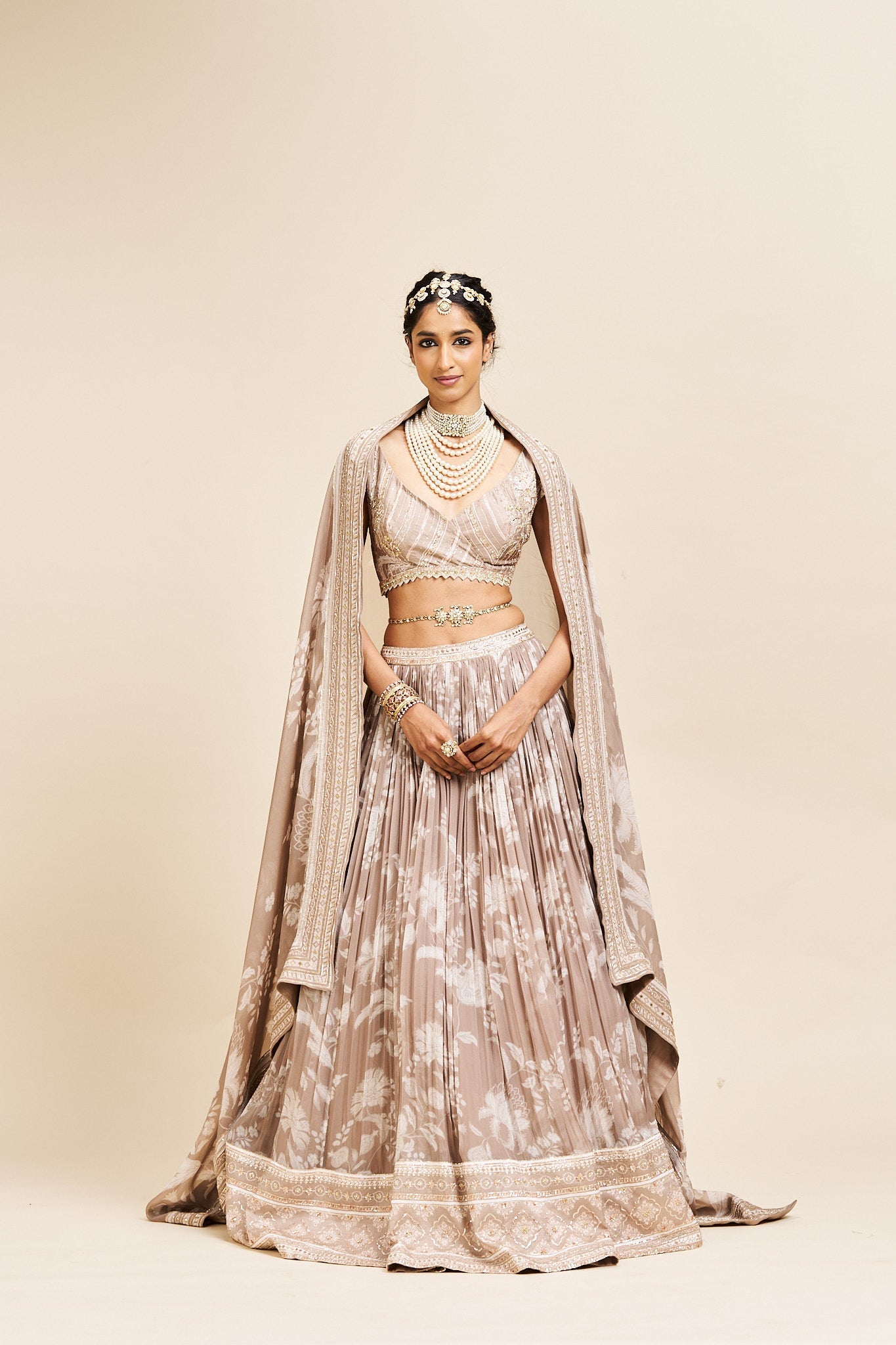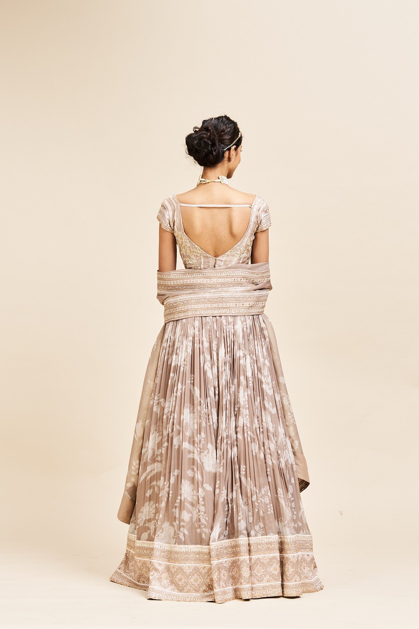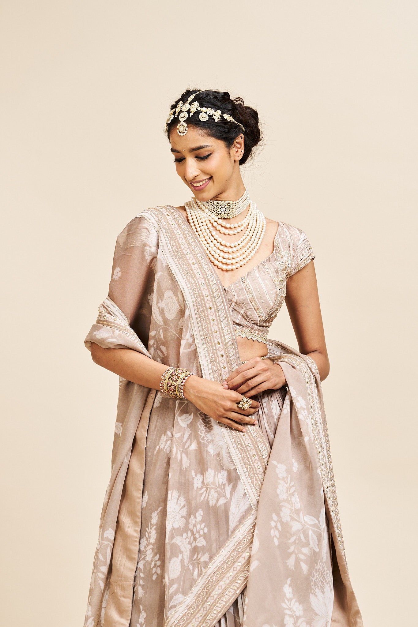 Pragya lehenga set with dupatta- Neutral beige