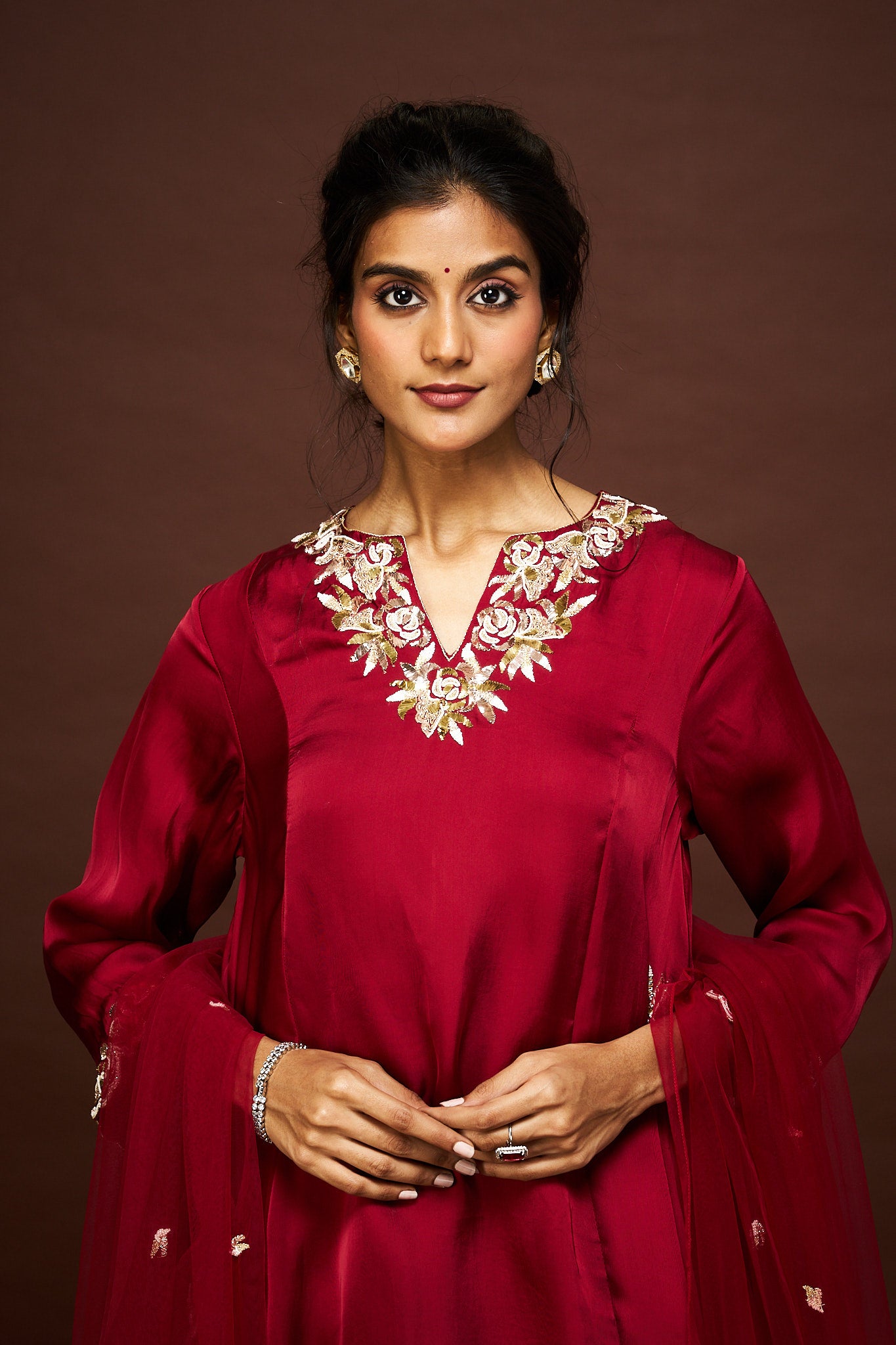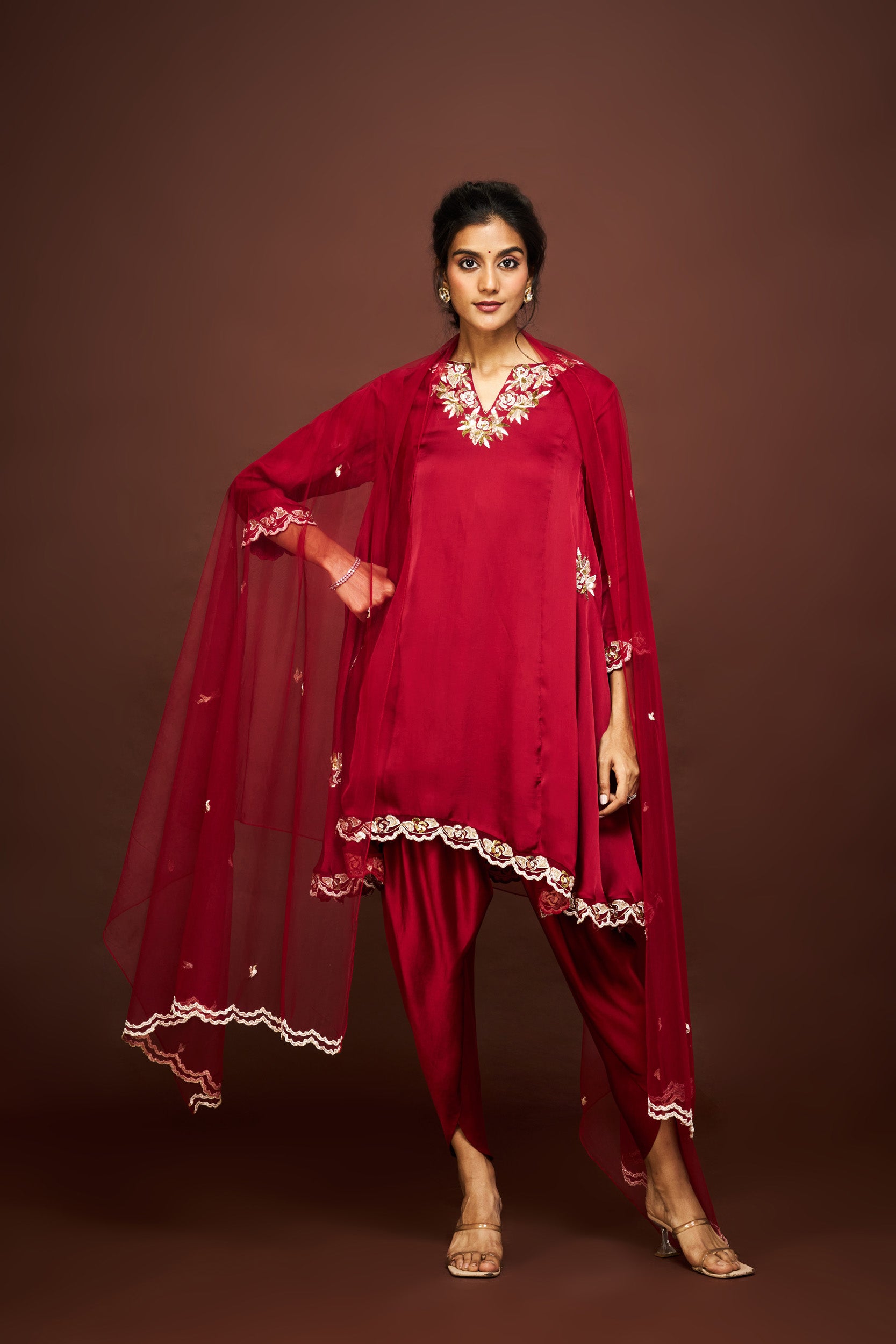 Description: A deep maroon short kurta set, rich in festive hues. Elegant and versatile, perfect for both day and evening wear.