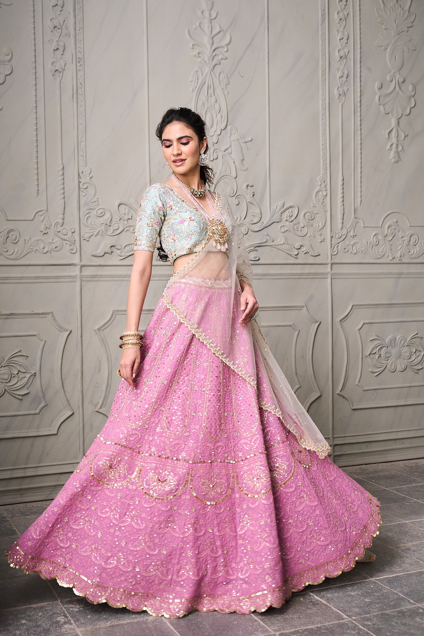 Fabric : Lehenga: Chikankari Blouse: Raw silk Duppatta: Organza