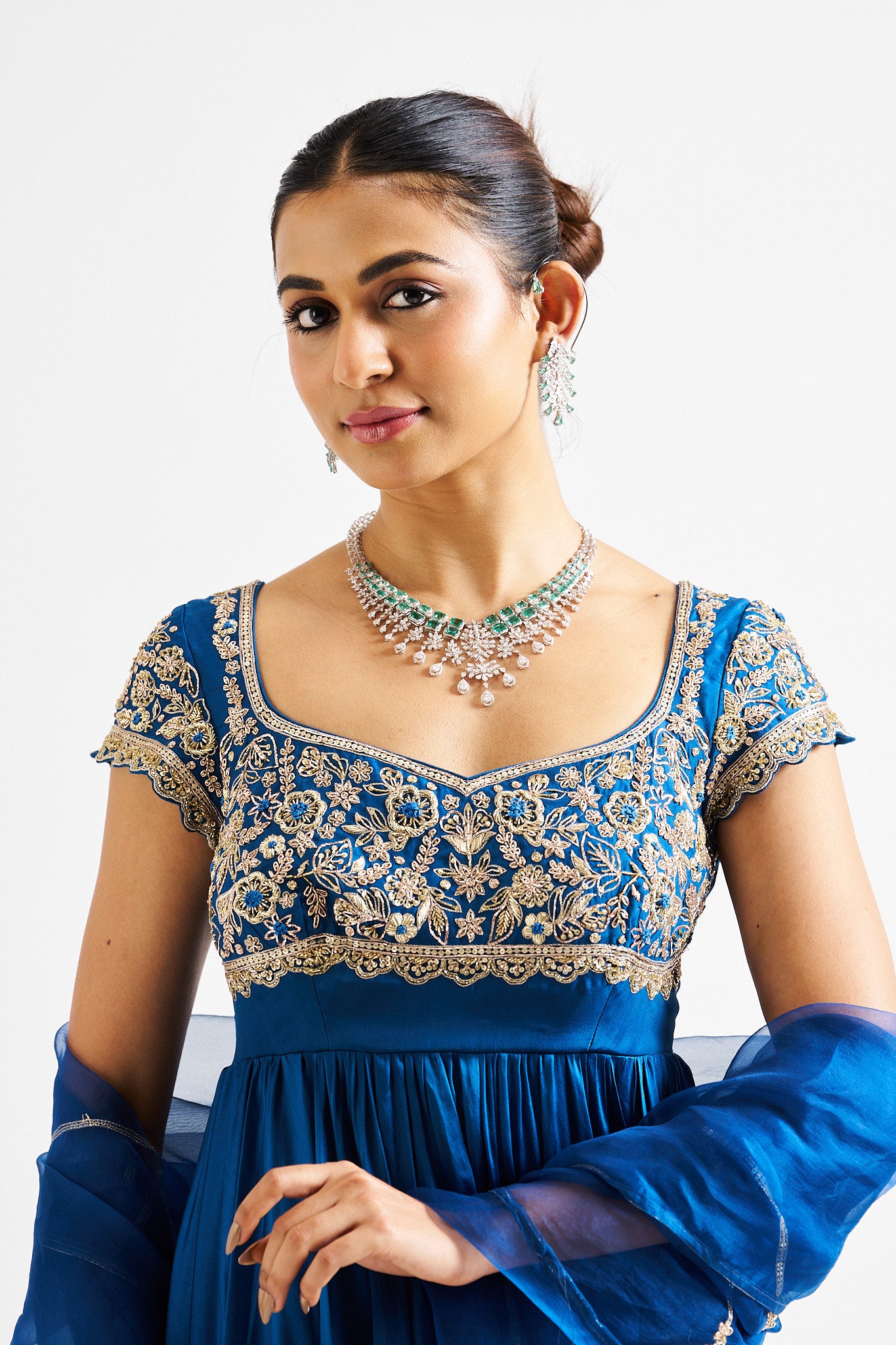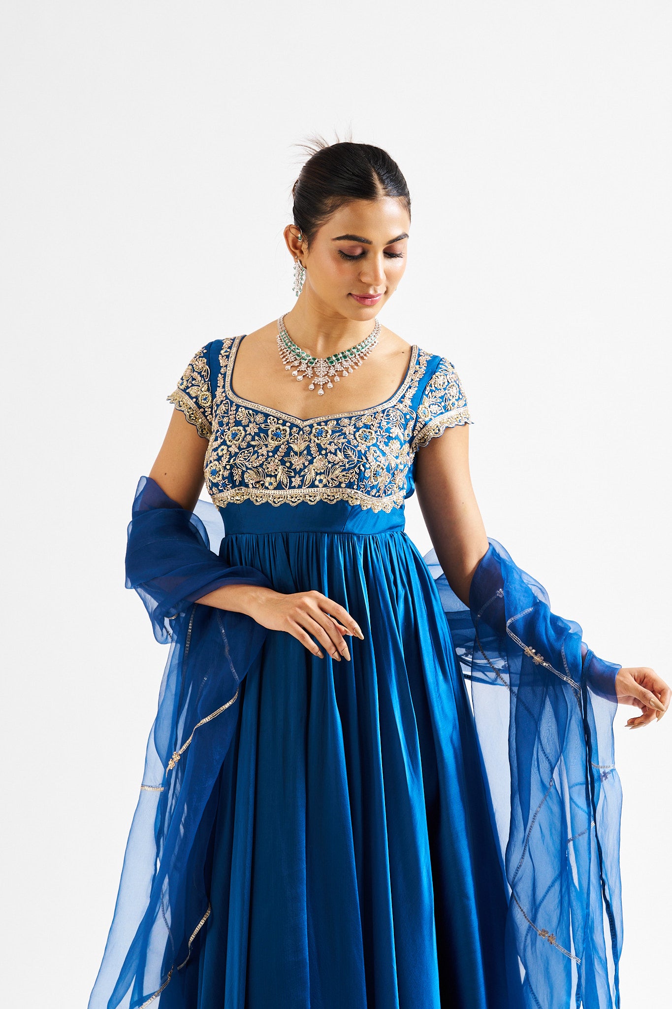 Thira Peacock Blue Anarkali with Dupatta RTS