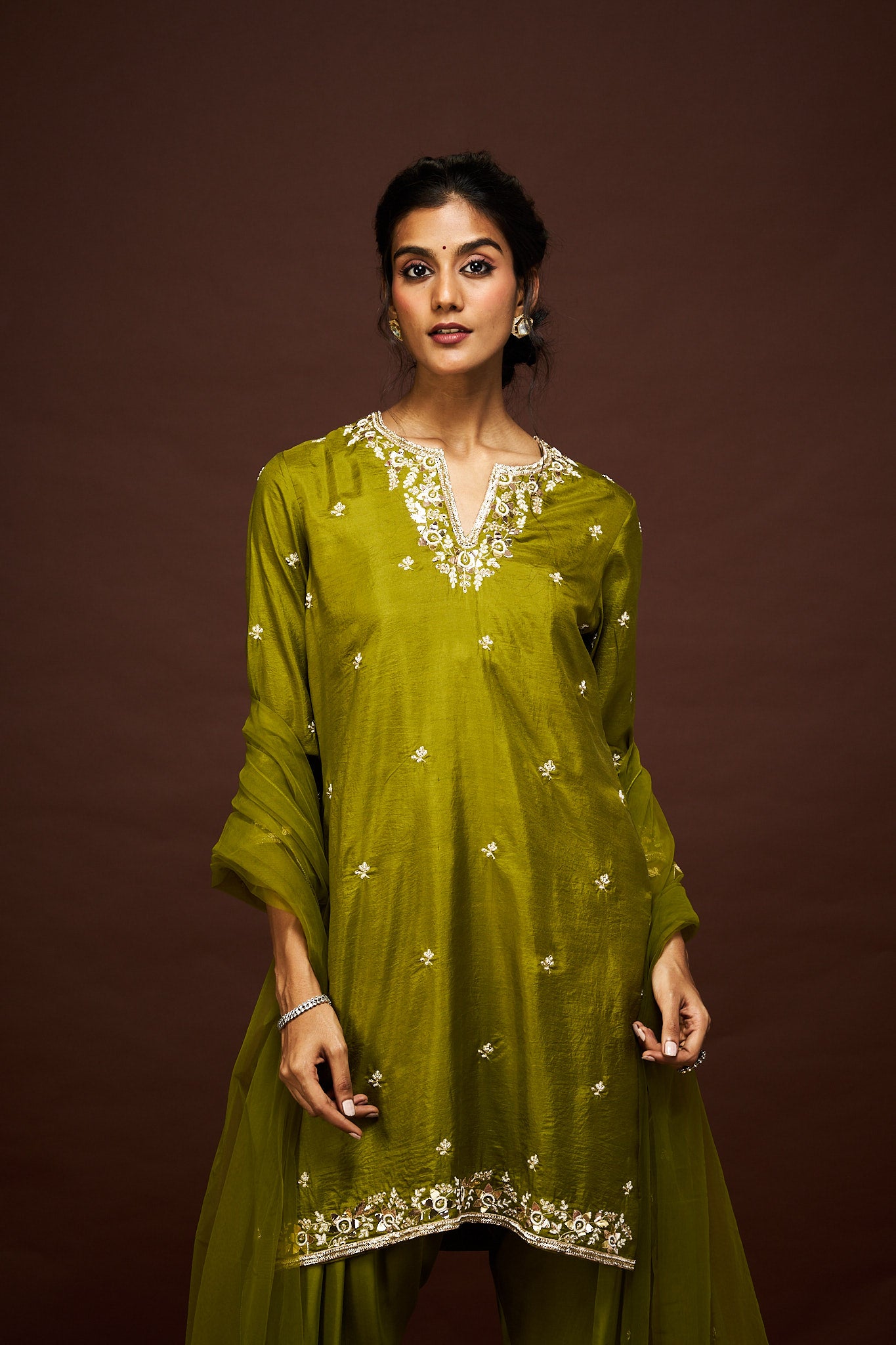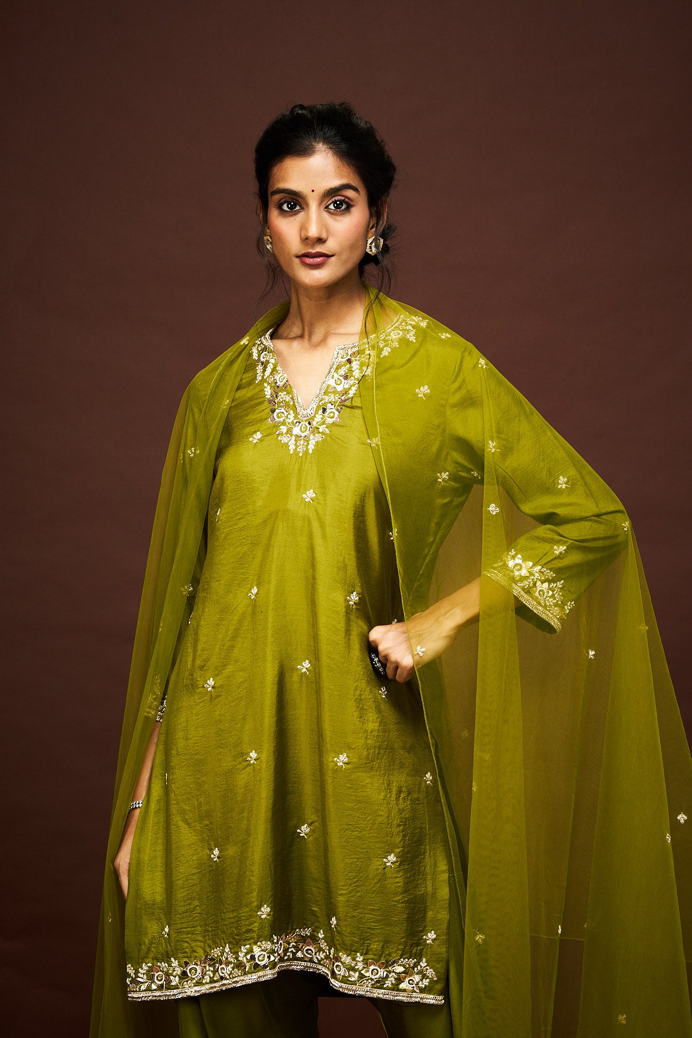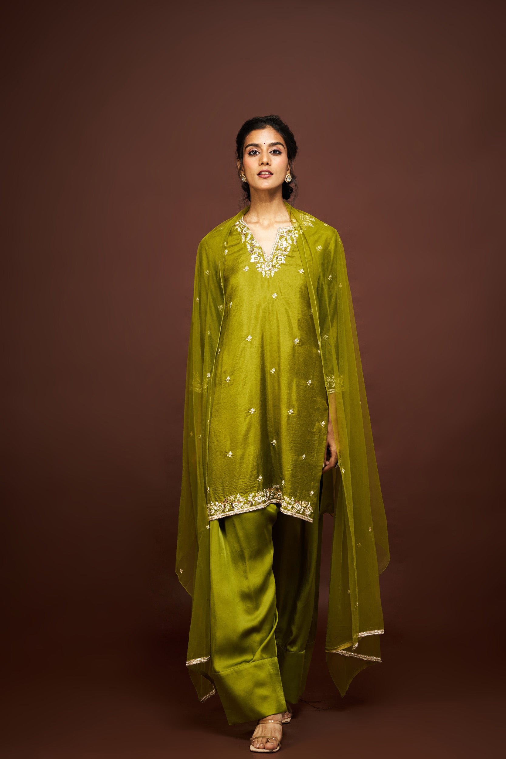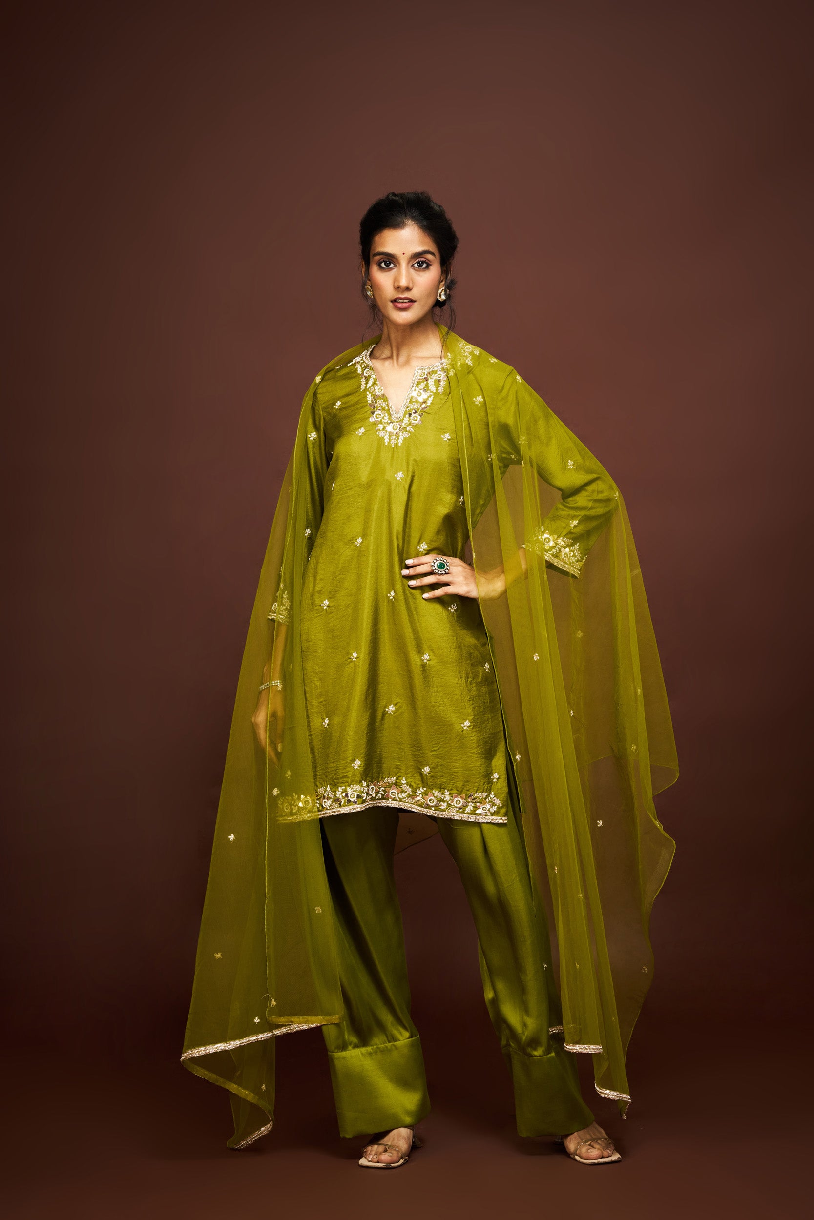 Description: A chic green short kurta set, designed with festive comfort and style in mind. Effortless and versatile for any celebration.