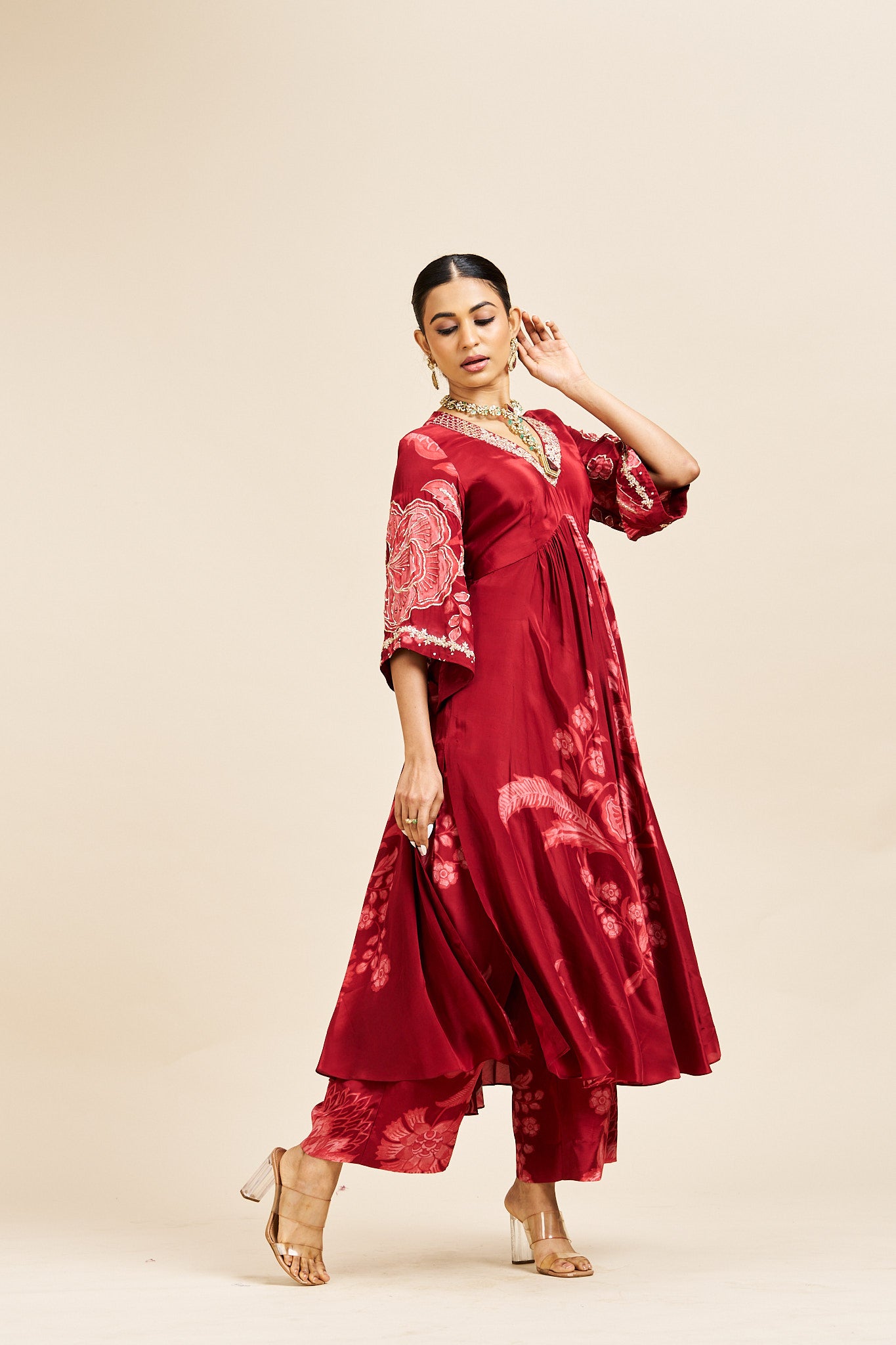 Description: Rich red set crafted for an impactful festive appearance.
