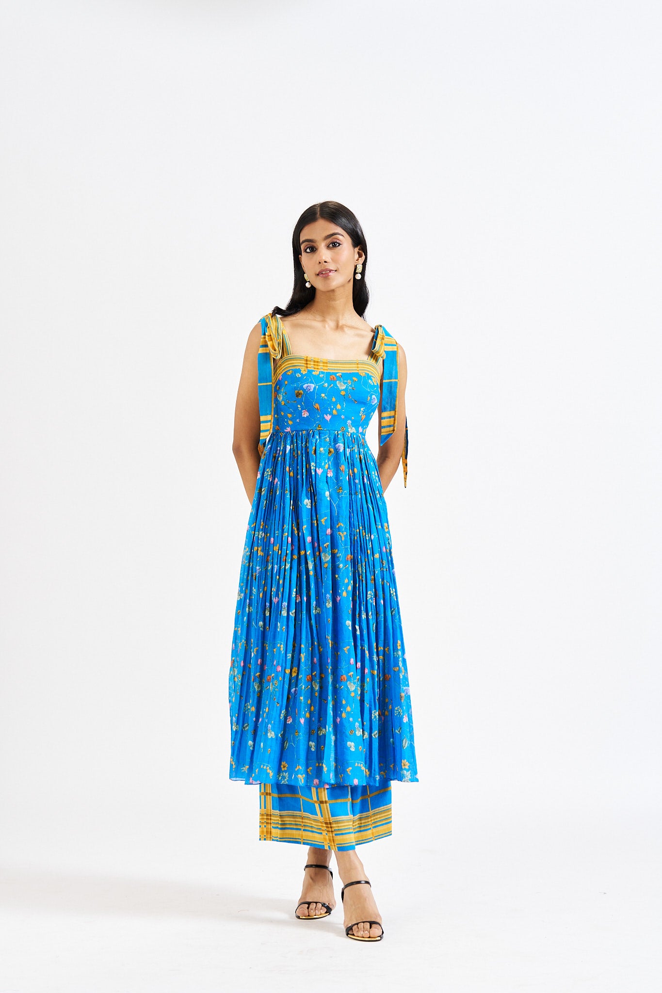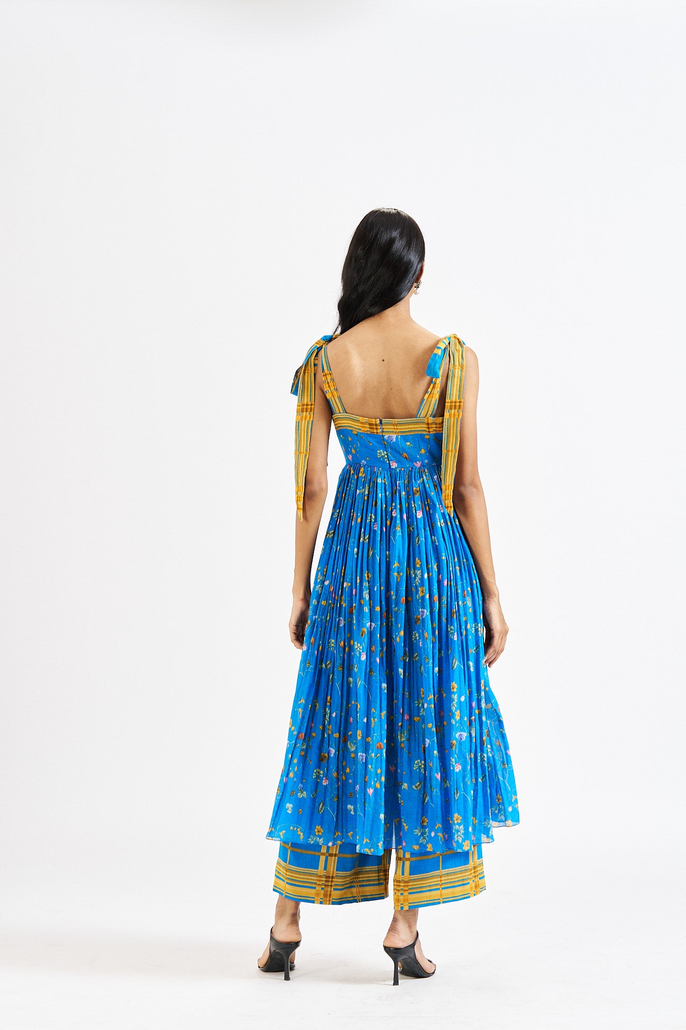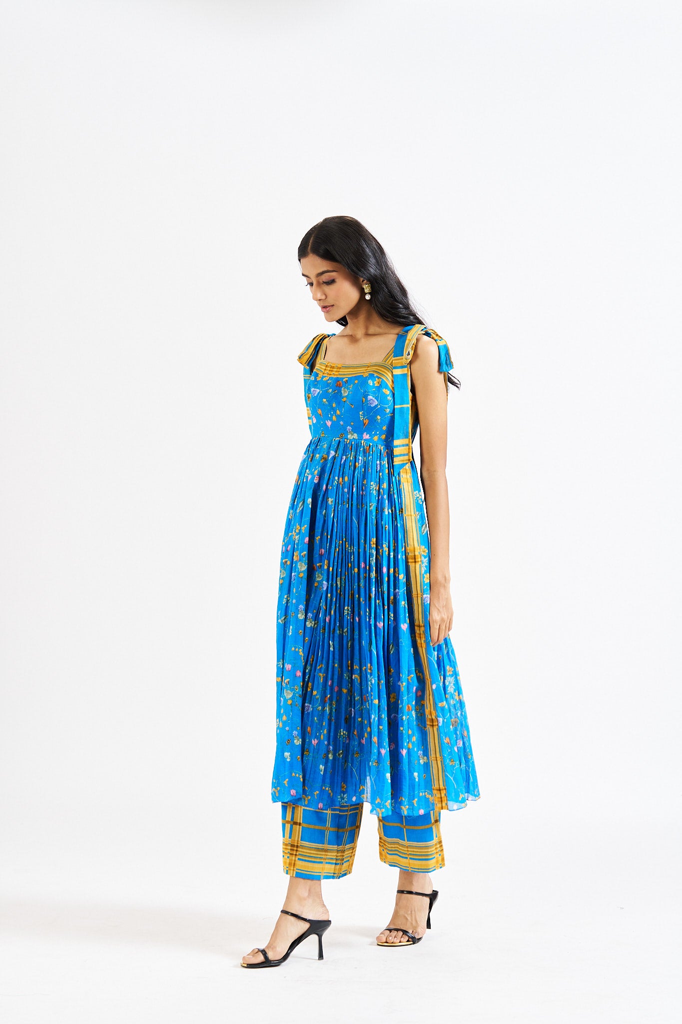 A coordinated top and bottom set in calming blue tones for a relaxed yet refined look.
