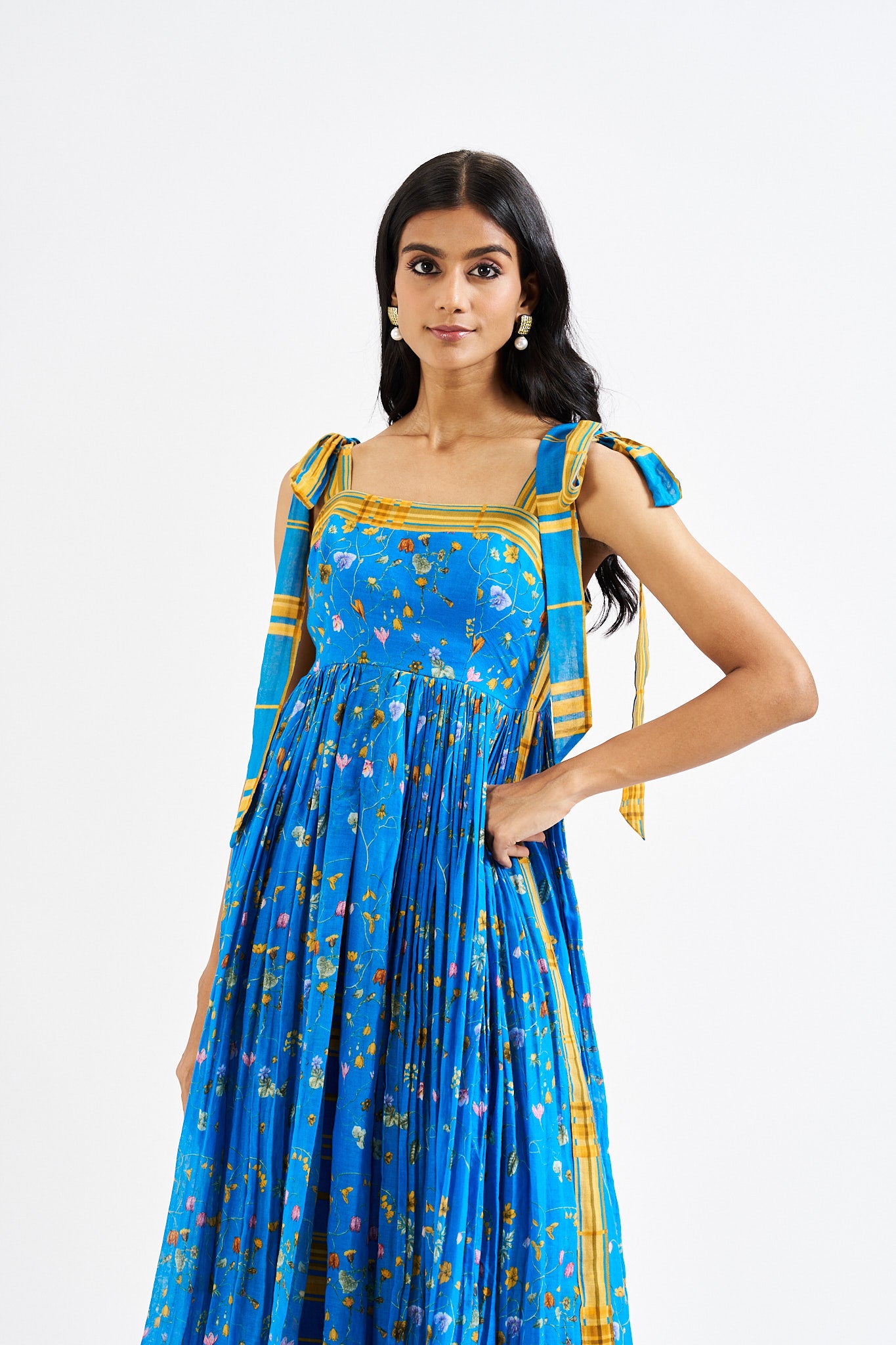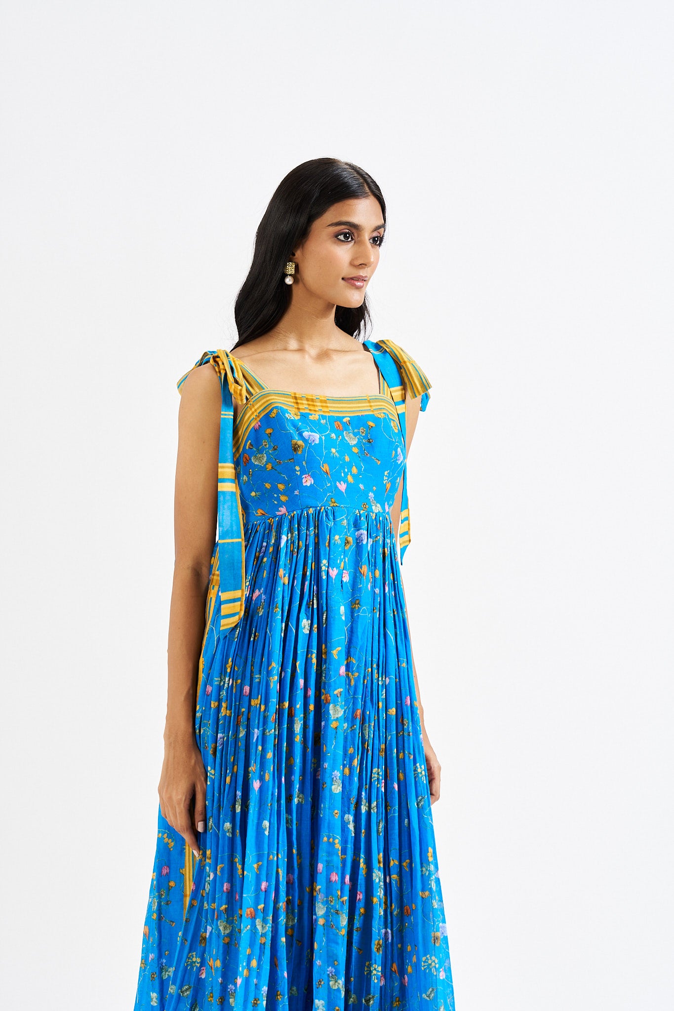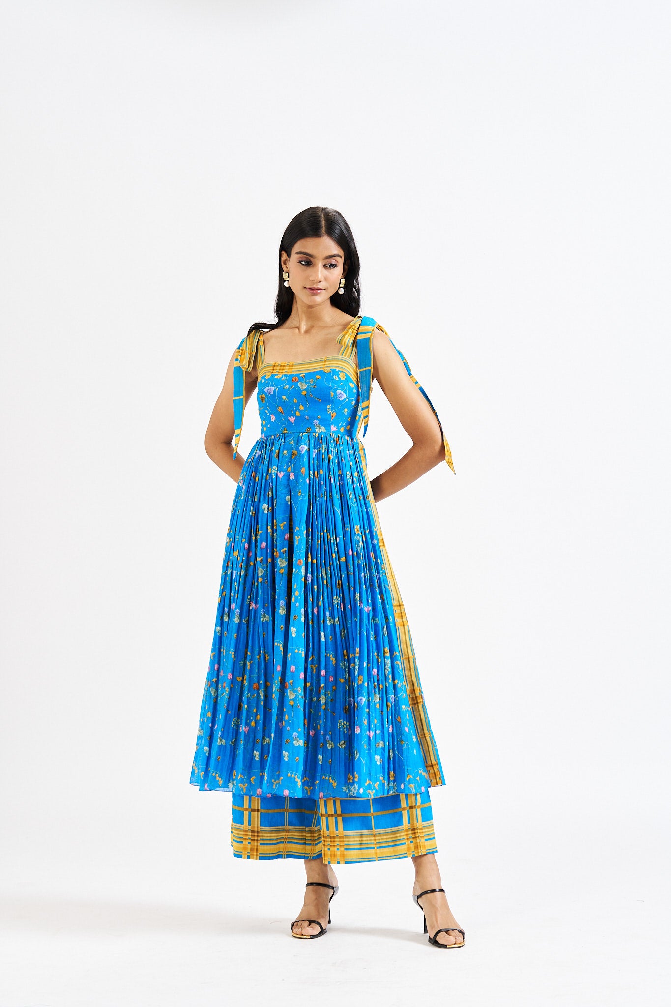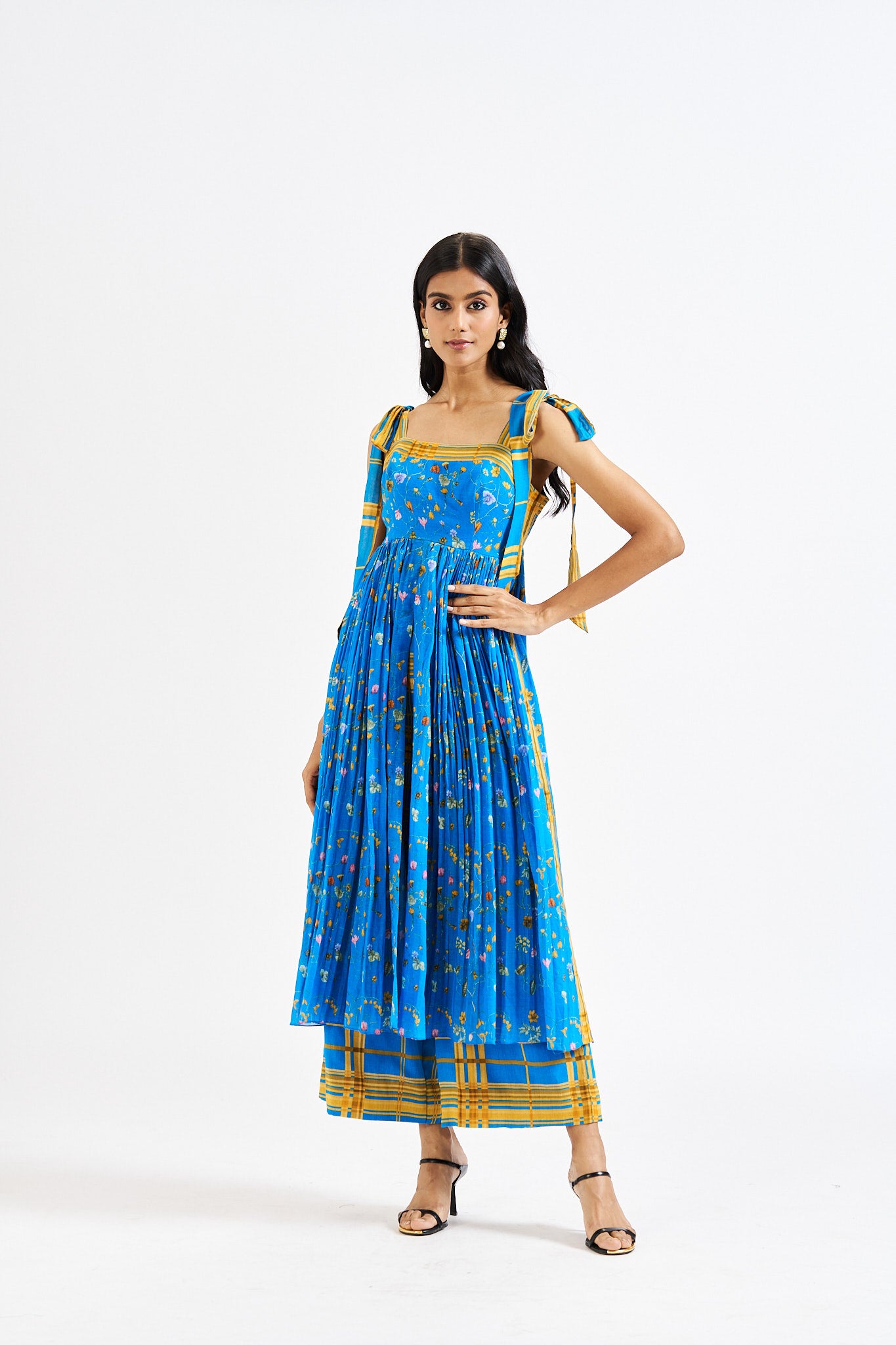 A coordinated top and bottom set in calming blue tones for a relaxed yet refined look.