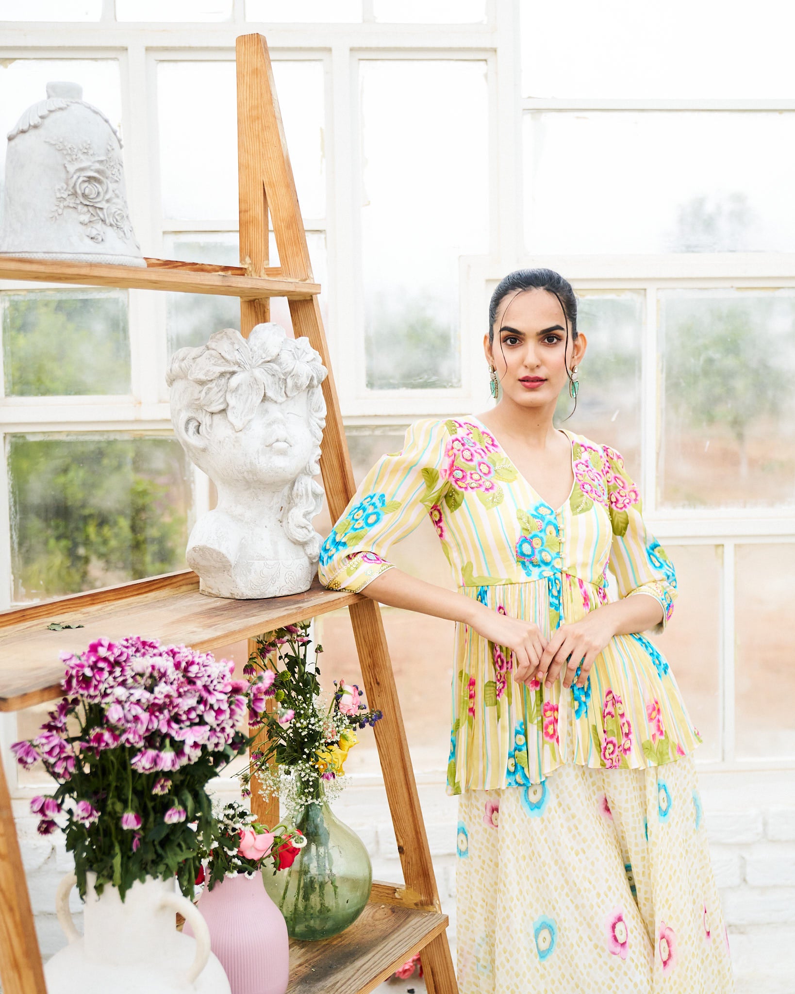 Floral palazzo set with peplum top with embroidery detailing